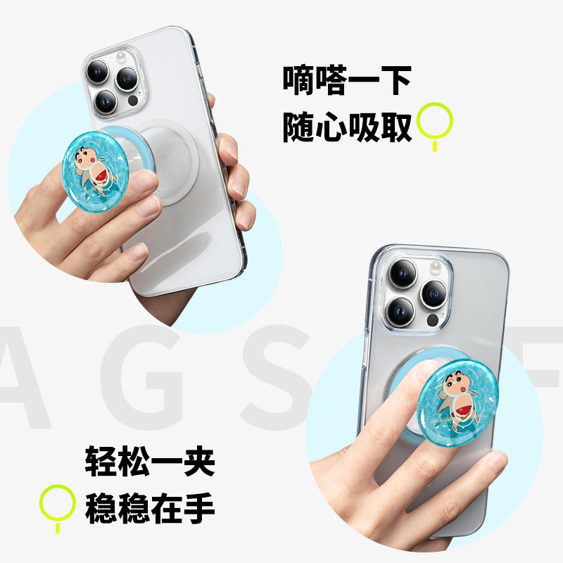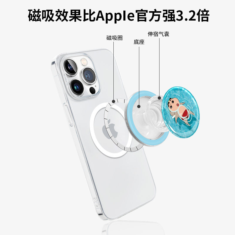 📚 MASFIEL × 仰泳小新适用MagSafe磁吸支架卡通可爱气囊创意手机壳通用便携磁力圈背贴扣创意旋转桌面懒人追剧