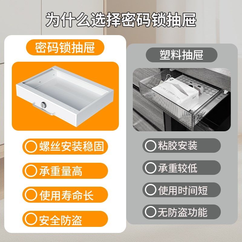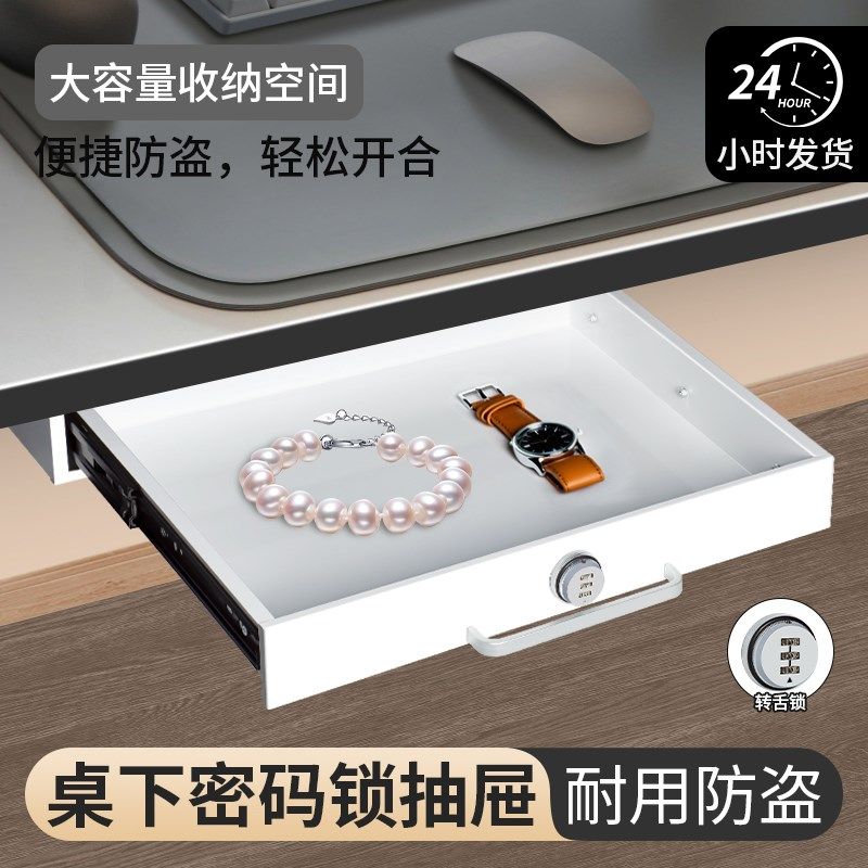 📚 桌下暗格抽屉柜带密码锁隐形收纳盒工位办公书桌下挂式储物抽屉