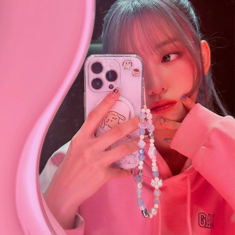 📚 LESSERAFIM周边宮脇咲良同款衣服印花粉色卫衣套头薄款加绒连帽衫