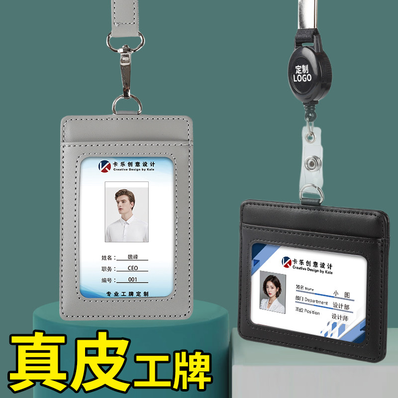 📚 真皮工作牌卡套挂绳定制工作证员工企业单位胸牌厂牌吊牌工牌制作