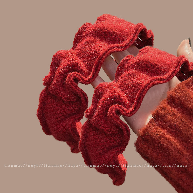 📚 秋冬褶皱毛线高颅顶发箍女款高级感洋气时尚红色宽边头箍毛质发卡