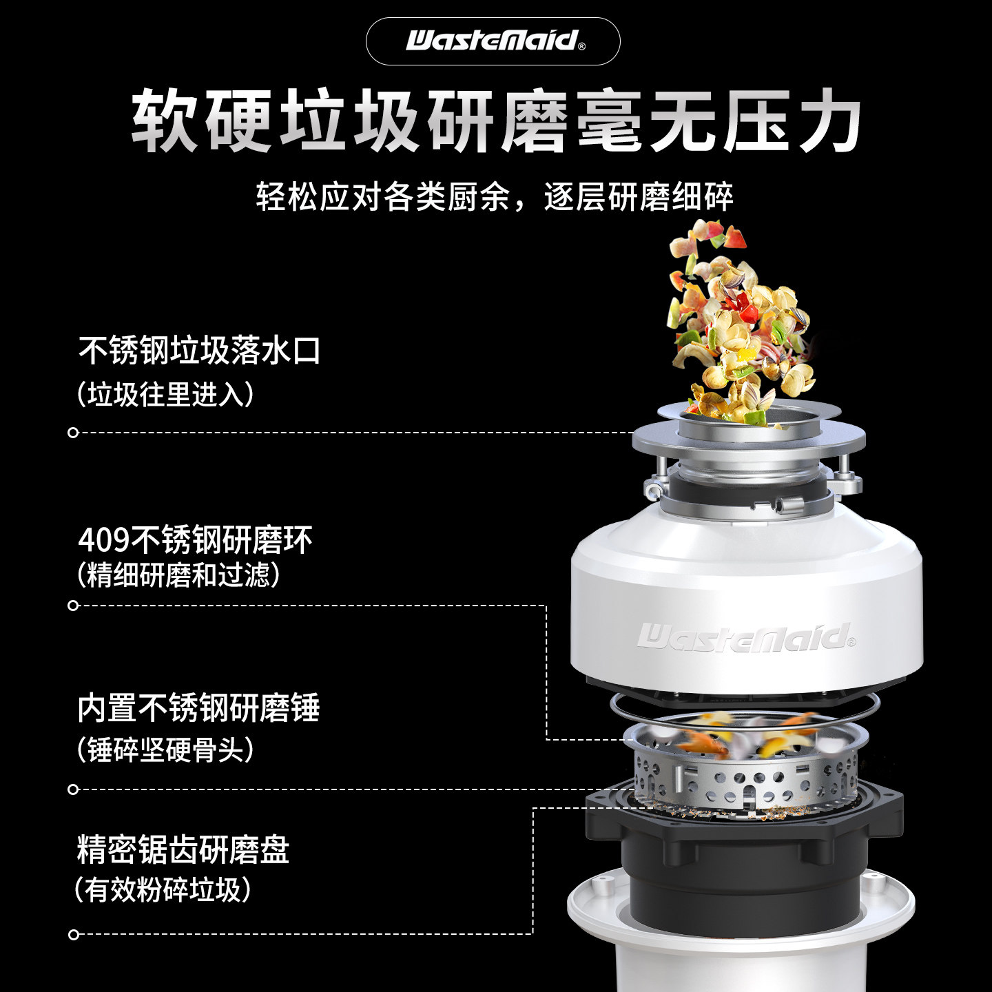 📚 唯斯特姆新国标A级智能自动家用厨余垃圾处理器厨房食物粉碎机