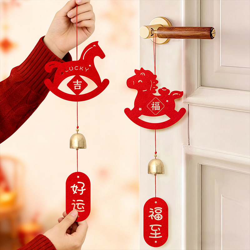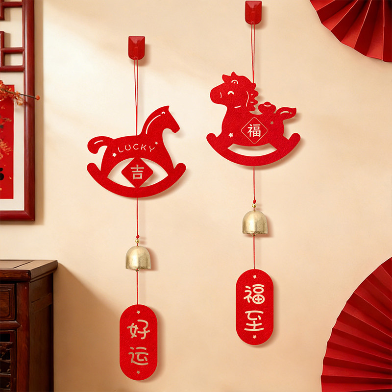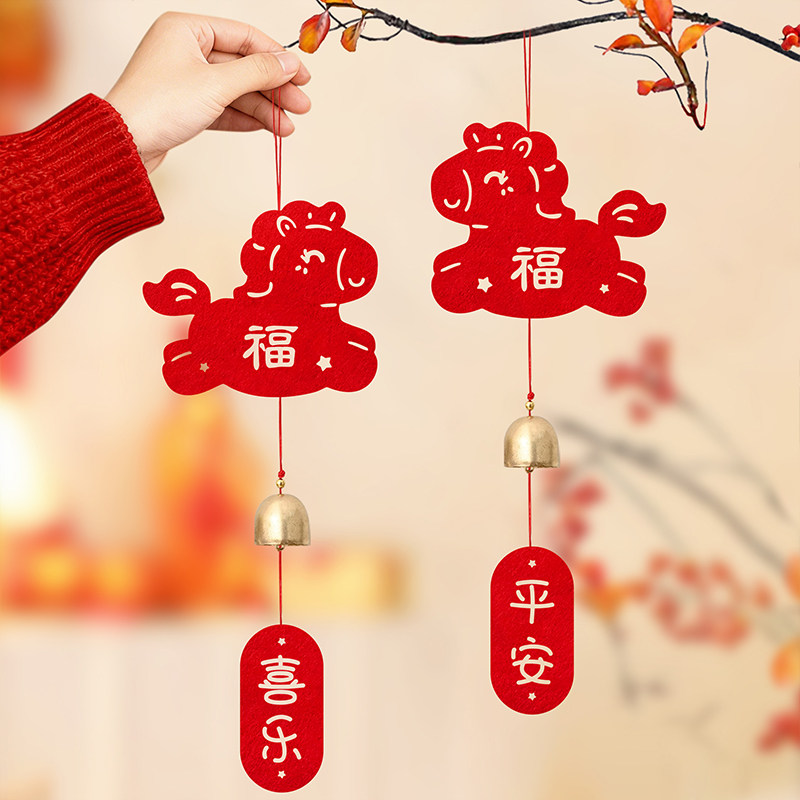 📚 马年毛毡风铃挂件过年入户门绿植铃铛挂饰新年春节客厅布置装饰品