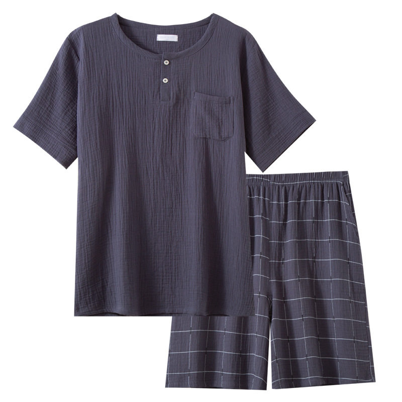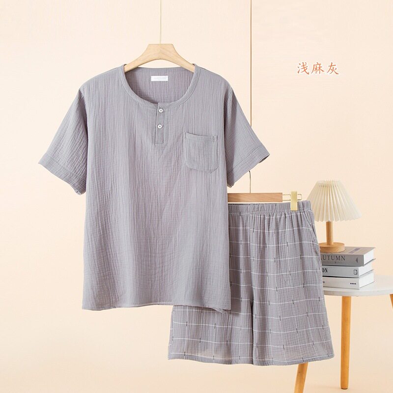 📚 夏季新品男士双层绉纹纱布纯棉短袖五分裤睡衣休闲家居服套装大码
