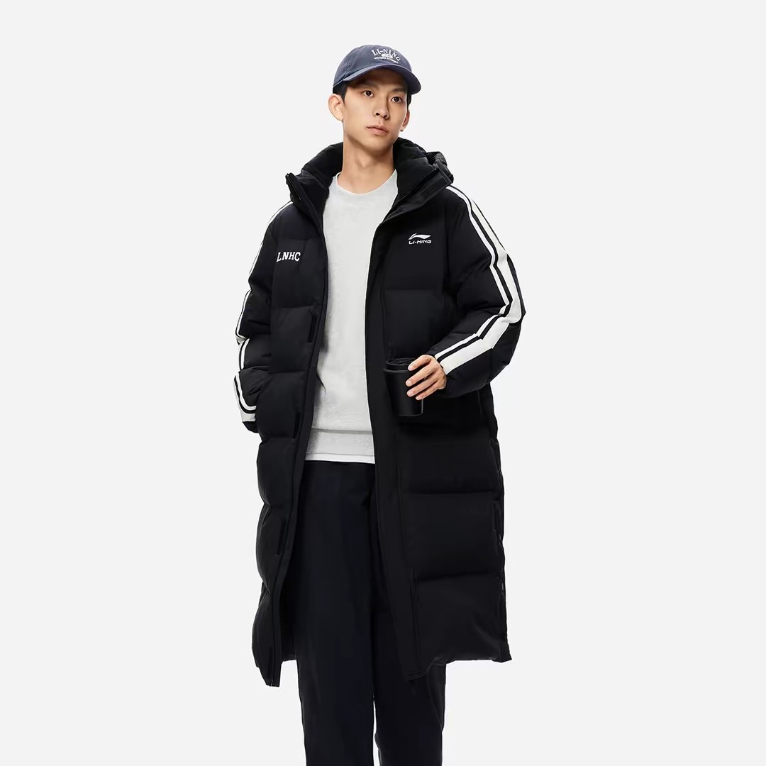 📚 李宁火锅羽绒系列防泼水远保暖连帽拉链户外休闲冬季长款羽绒服