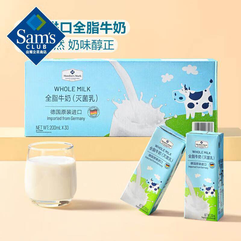 📚 山姆代购Member's Mark 全脂牛奶(灭菌乳) 200ml*30盒纯营养