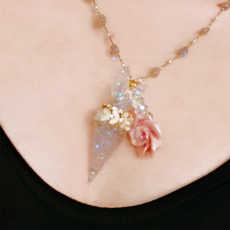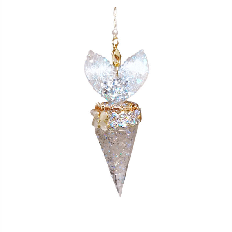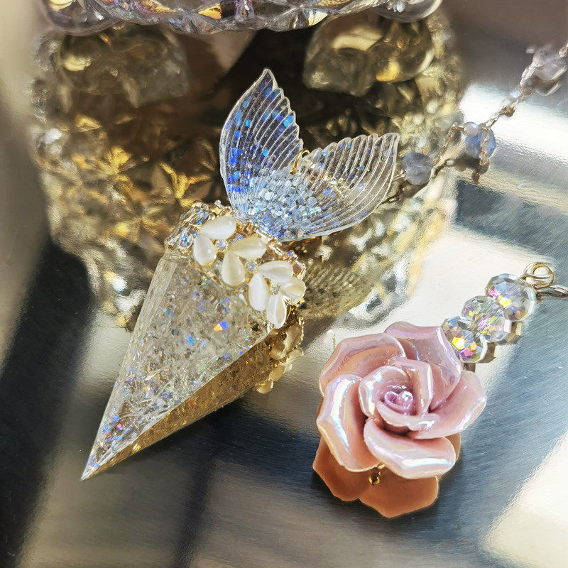 📚 灵摆白水晶树脂项链灵敏快速吊坠鱼尾幻彩月光石原创可拆卸女