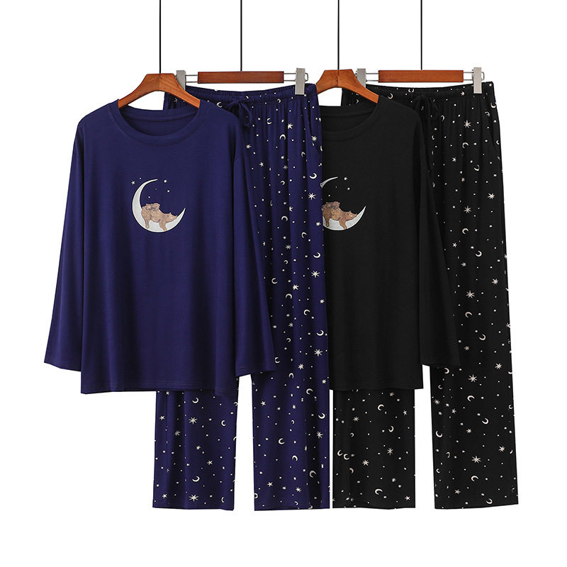 📚 居家服女士可出门休闲套装可外穿长袖长裤春秋薄款超软莫代尔睡衣