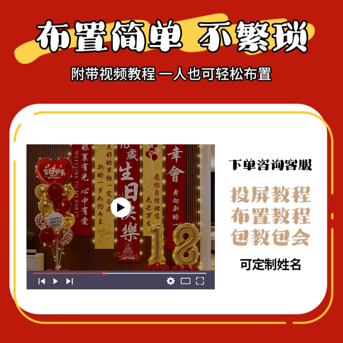 📚 18岁生日条幅仪式感装饰男女孩成人礼气球派对场景布置挂布背景墙