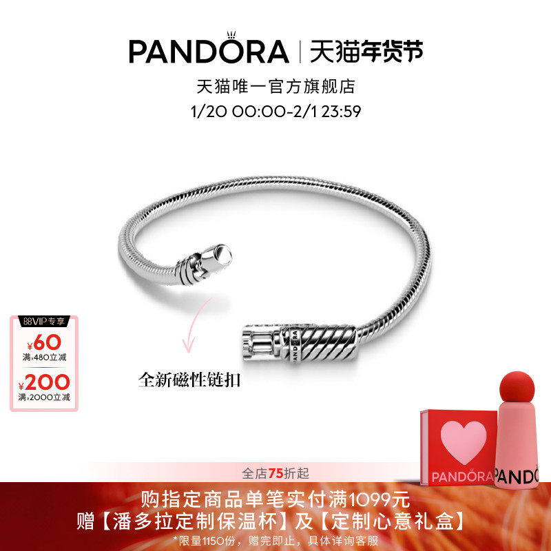 💥超值福利!Pandora潘多拉Moments滑动式磁性链扣蛇骨链手链女💖券后仅698,惊艳到手!