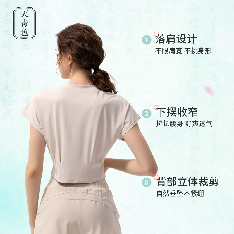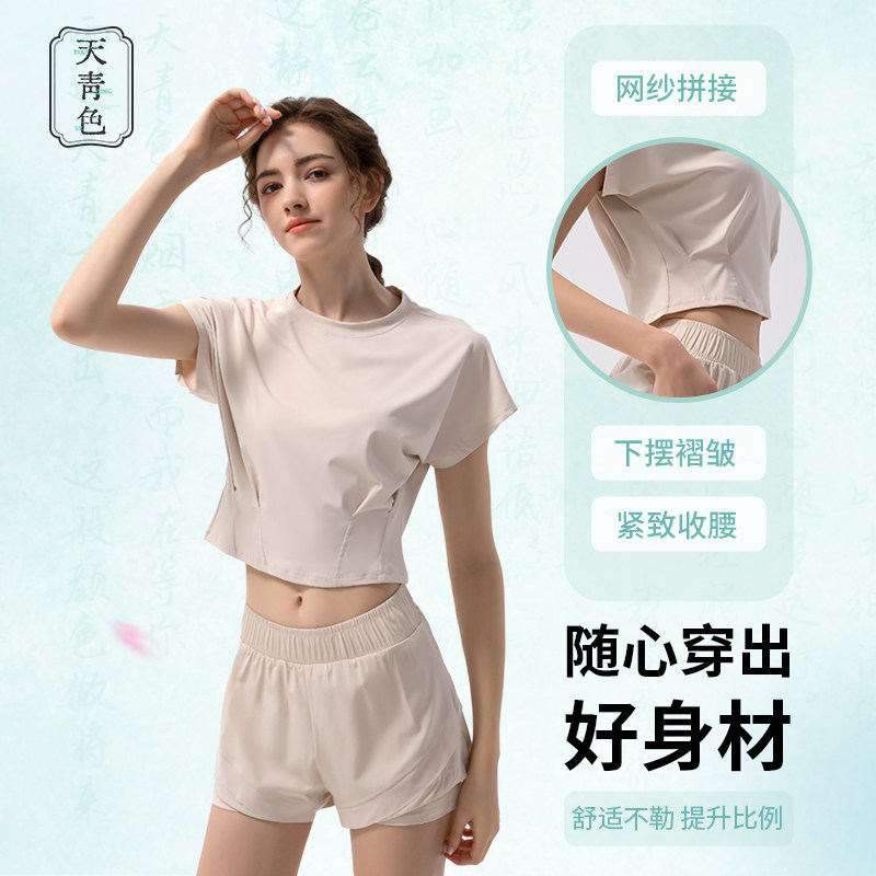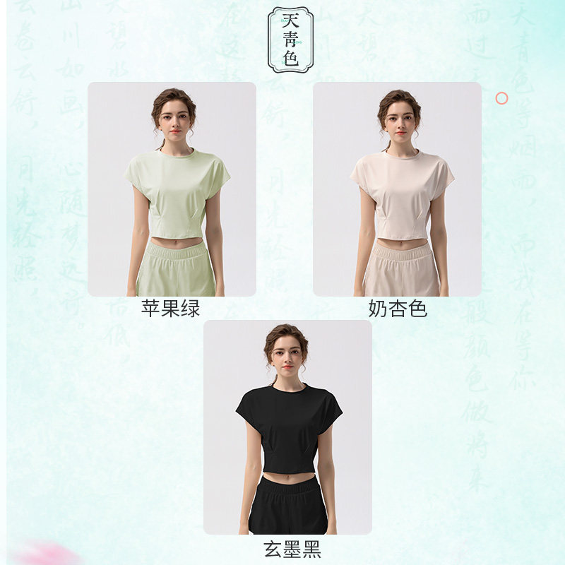 📚 谷饶天青色IuIu健身上衣透气跑步运动圆领短袖显瘦修身T恤瑜伽服