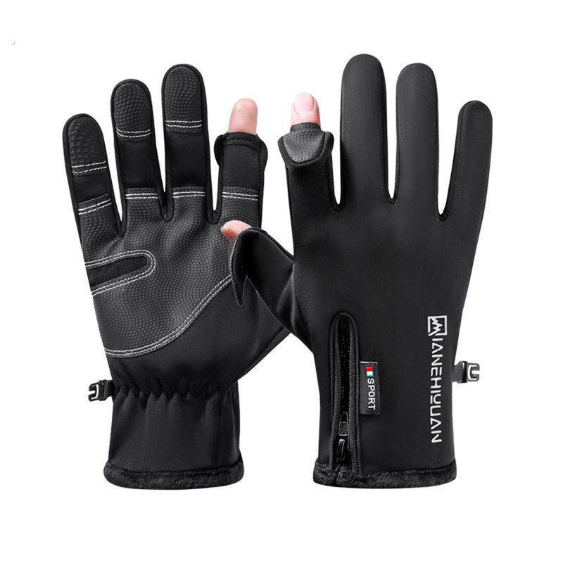 📚 摄影师专用手套冬季防风保暖加绒加厚防滑漏二指户外运动触屏防水