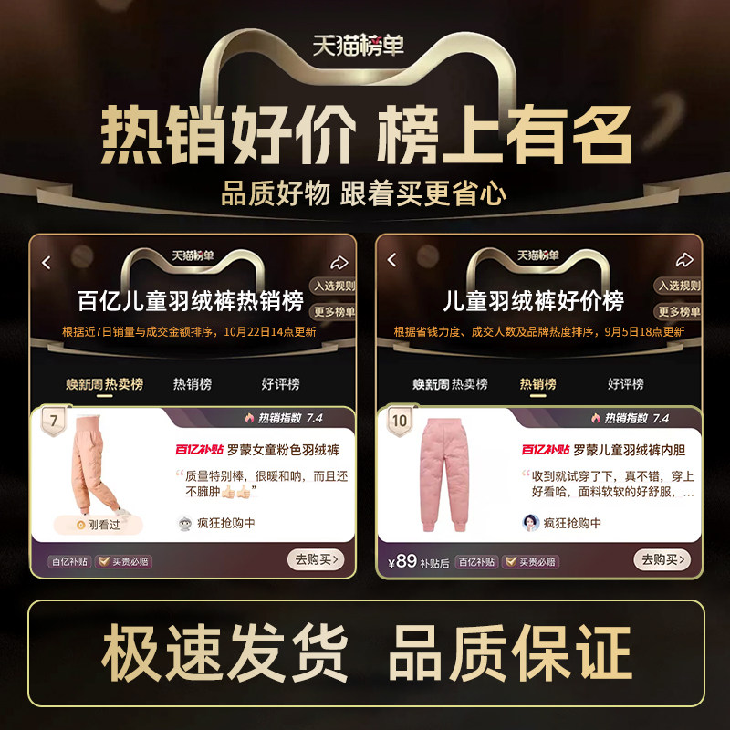 📚 罗蒙儿童高腰羽绒裤内胆女童小学生校服神器冬季内搭内穿裤子外穿