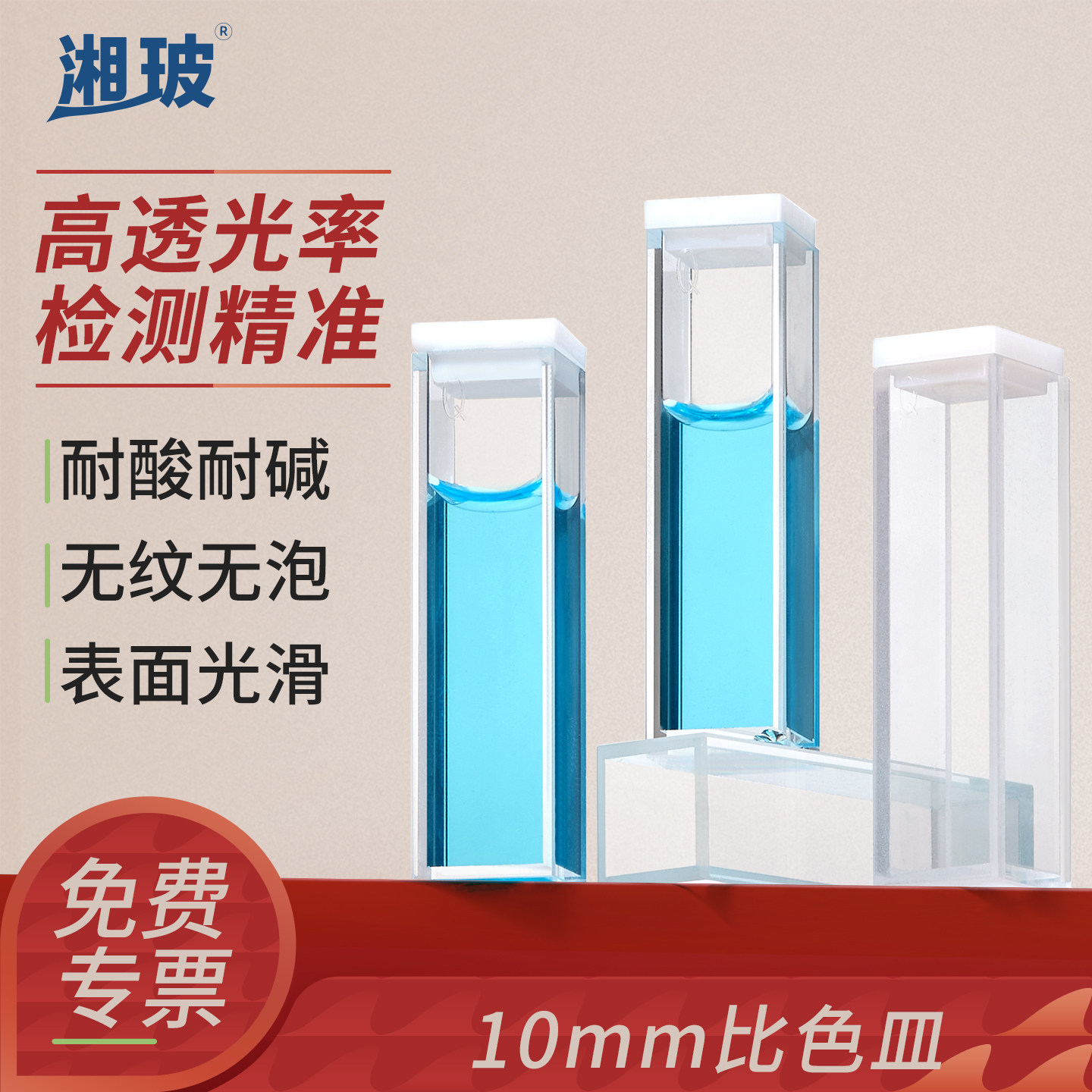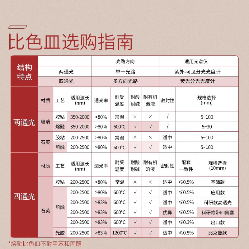 📚 湘玻玻璃比色皿石英比色皿10mm毫米紫外分光光度计比色皿两通光四通光狭缝1 2 3 4mm微量荧光比色皿架子