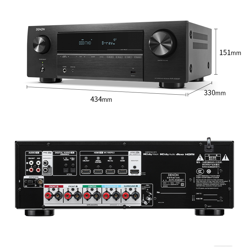 📚 Denon/天龙 AVR-X580BT5.2声道家用功放机大功率8K蓝牙家庭影院