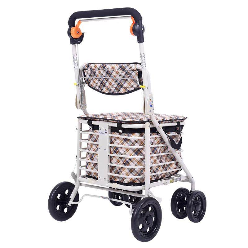 📚 埃立娇001E老年人买菜车可坐可折叠助行车 便携购物车 四轮手推车