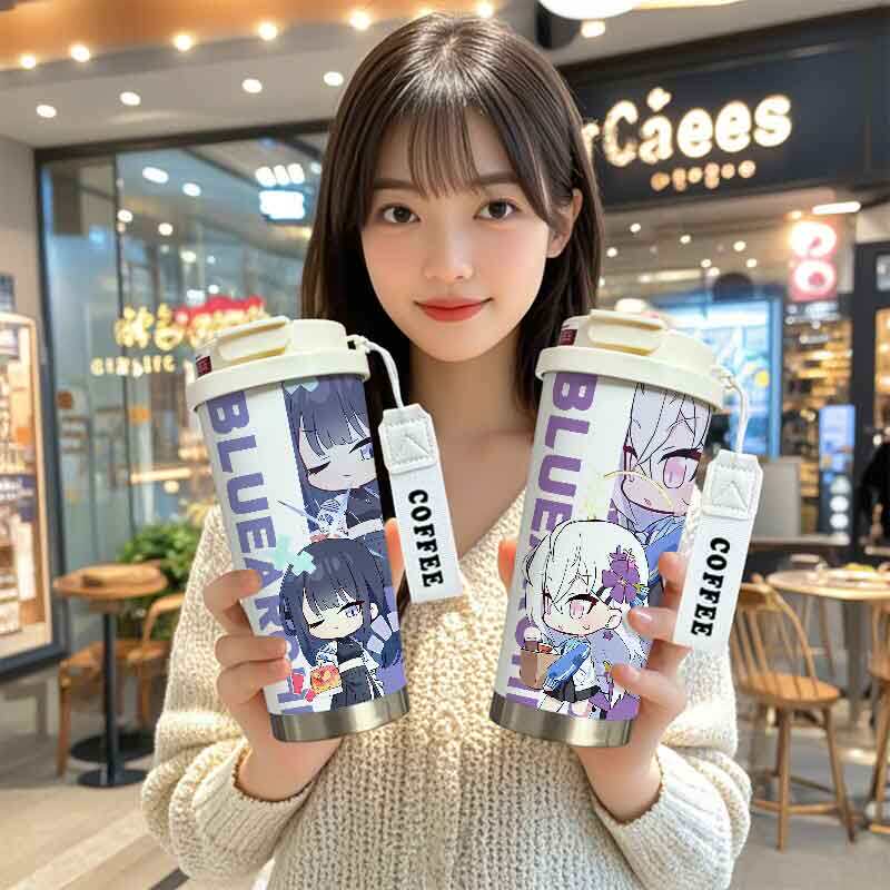 📚 蔚蓝档案周边保温杯白洲梓纱织佳世子二次元大容量学生不锈钢水杯