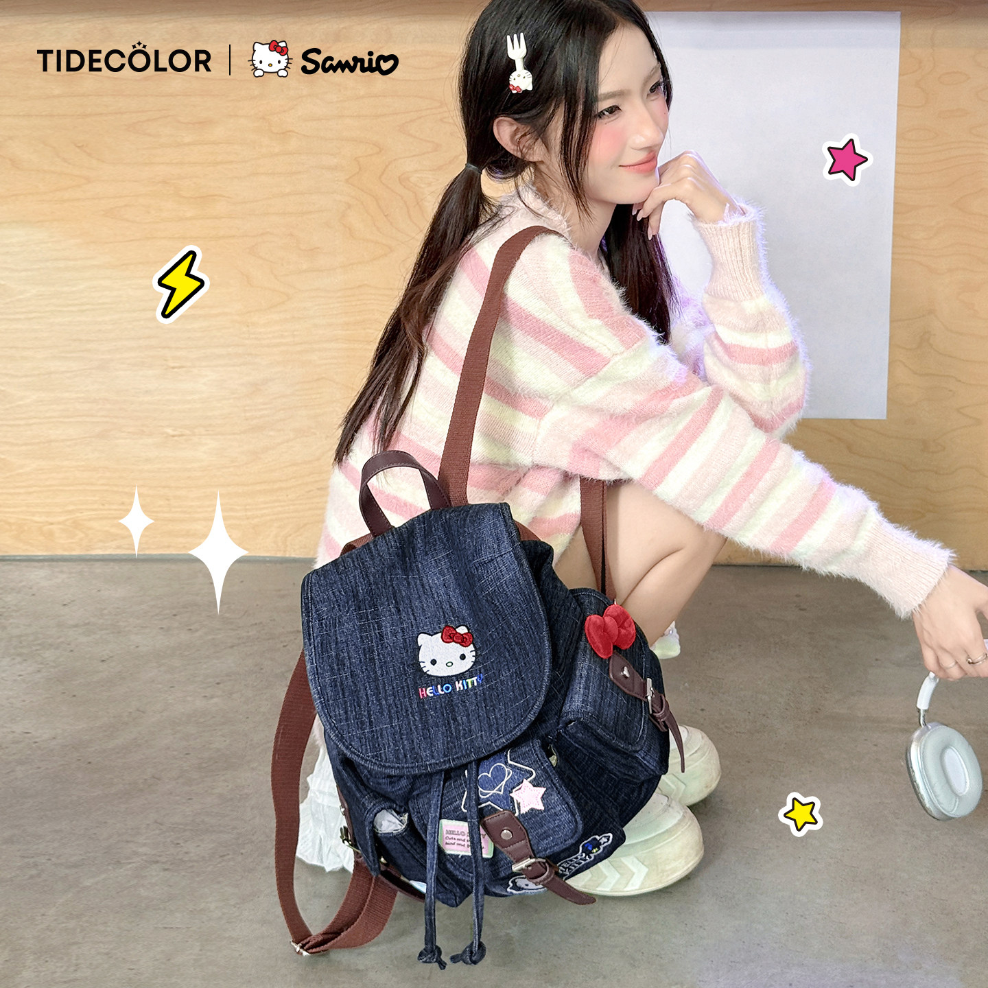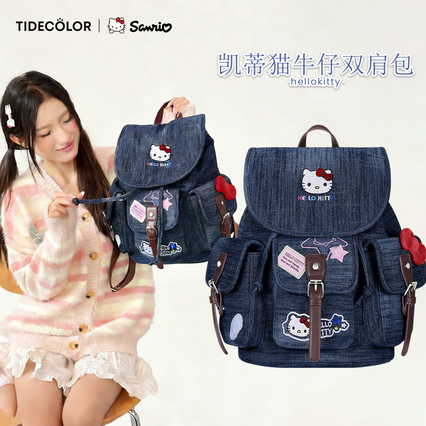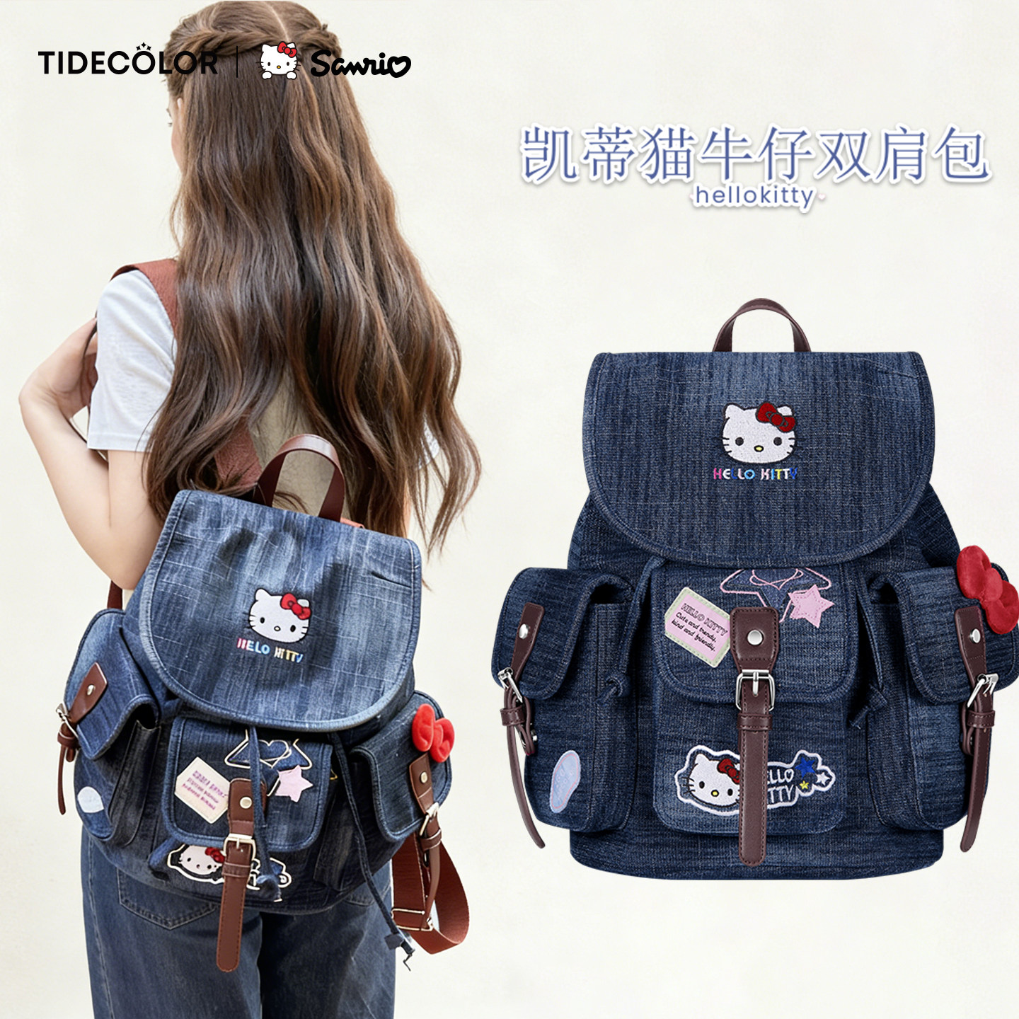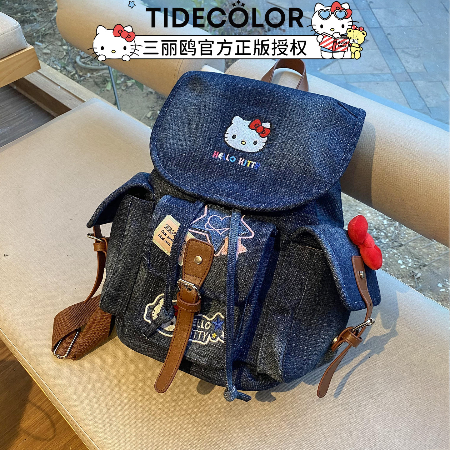📚 helloKitty联名牛仔背包女生三丽鸥学生书包大容量秋游旅行双肩包