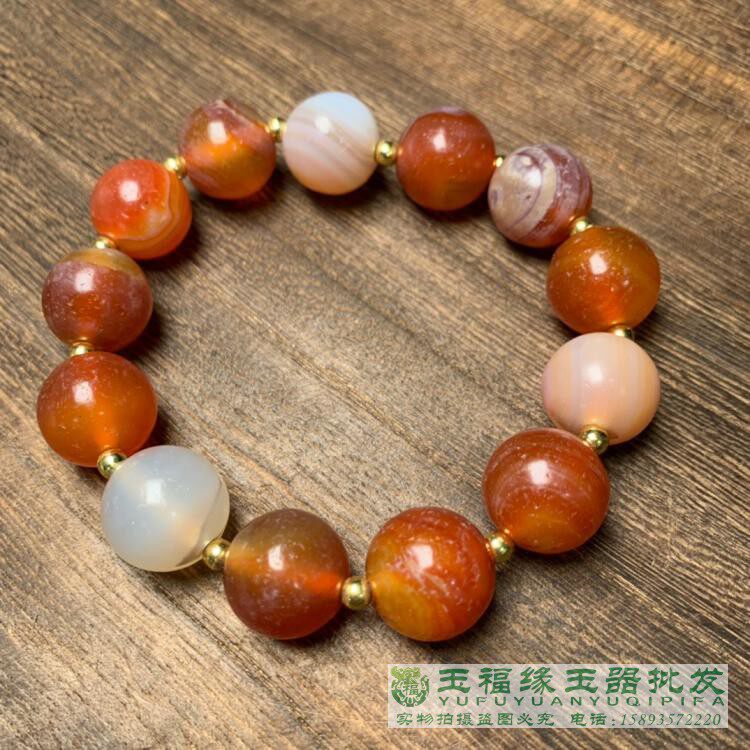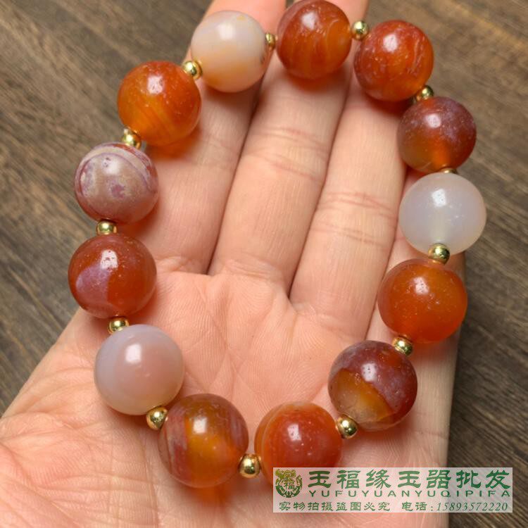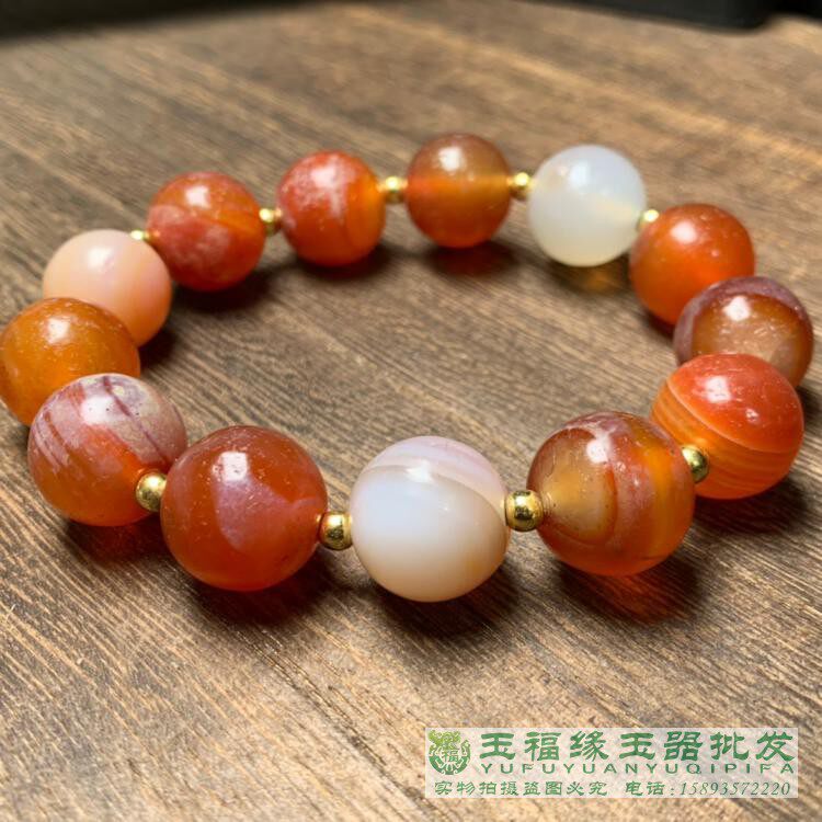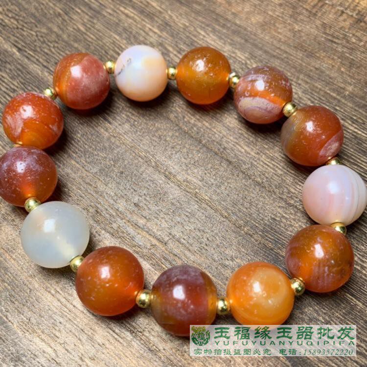 📚 天然钙化白皮老红玛瑙风化橘皮纹柿子红圆珠手串藏式手链多宝串