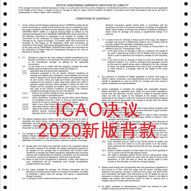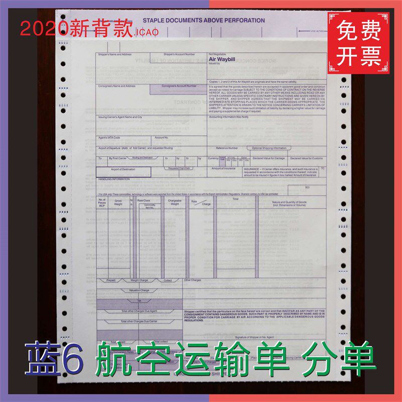 📚 国际航空运单 红联蓝联6联 空运提单 中性运单 分单 2020新版背款