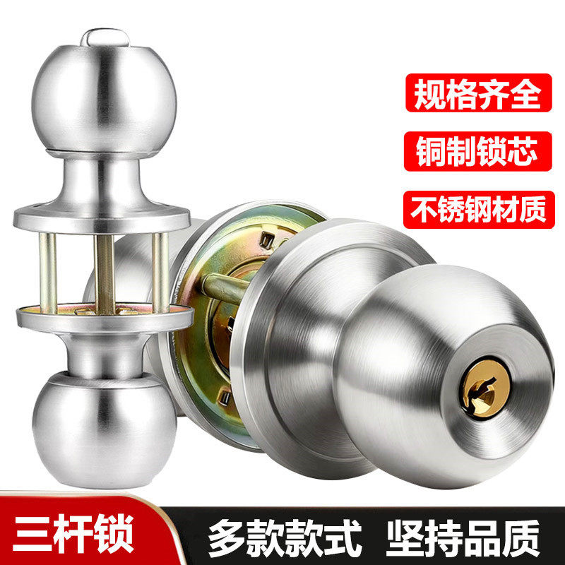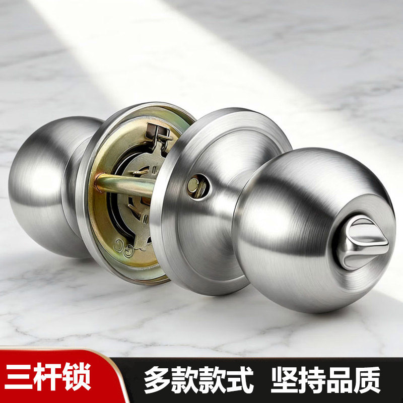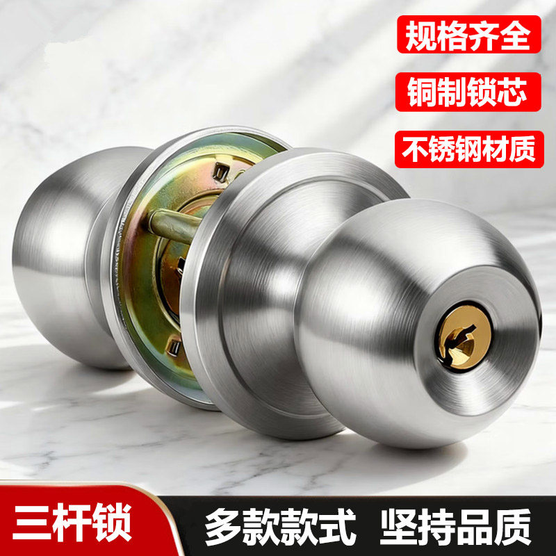 📚 三杆式锁不锈钢球形锁房门锁卫生间门球锁铝合金塑钢门三杆执手锁