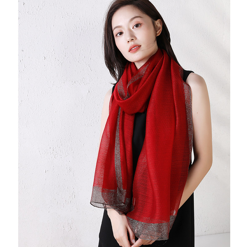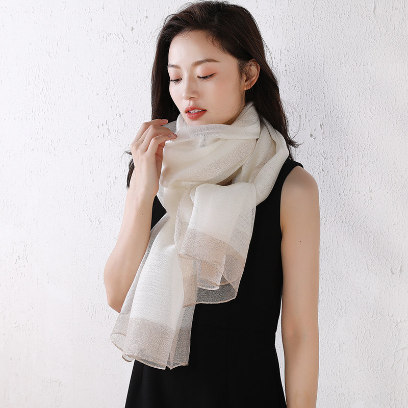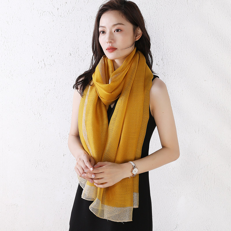 📚 专柜新品桑蚕丝羊毛混纺长款丝巾春秋冬季百搭保暖围巾姜黄色披肩