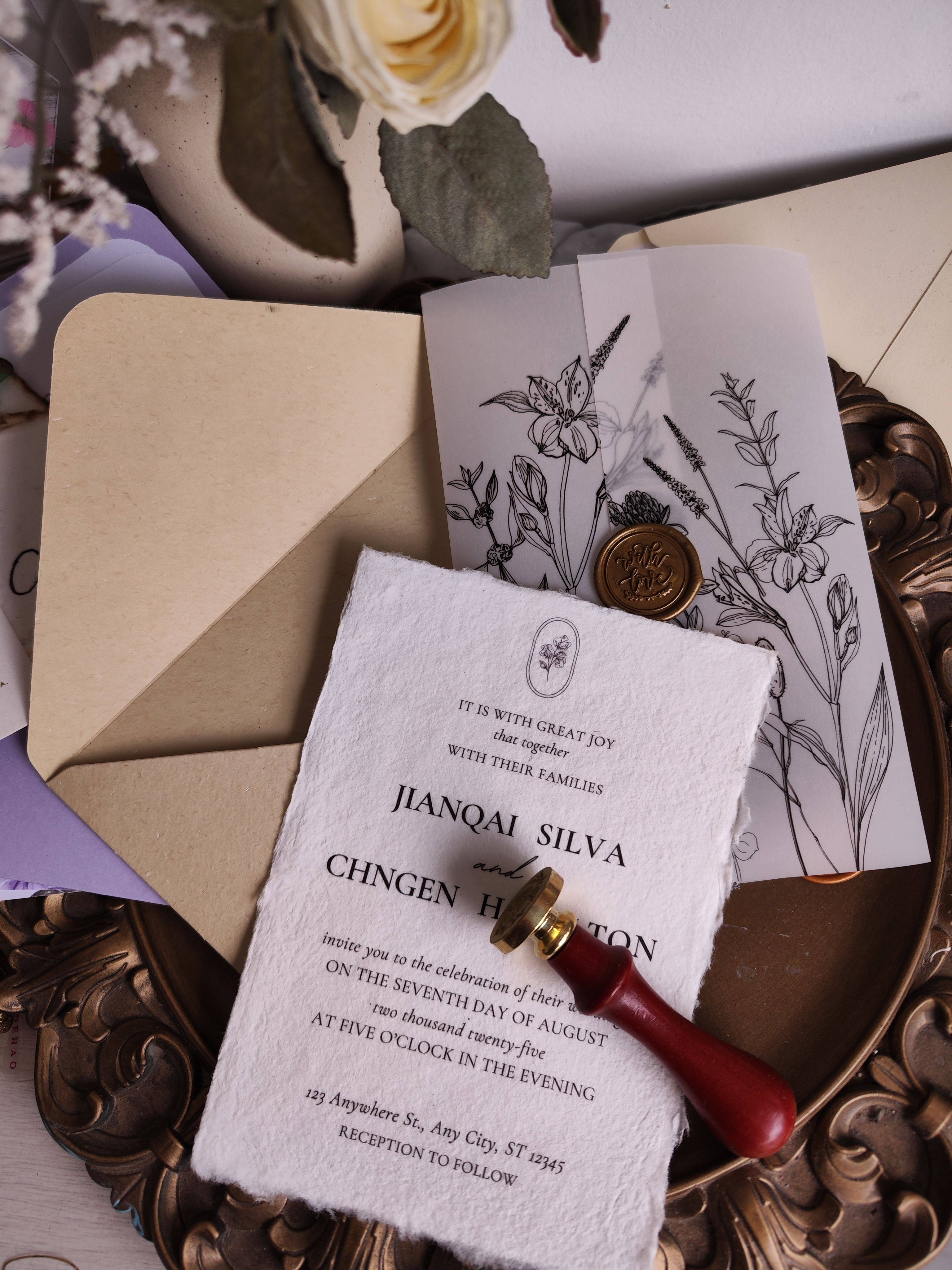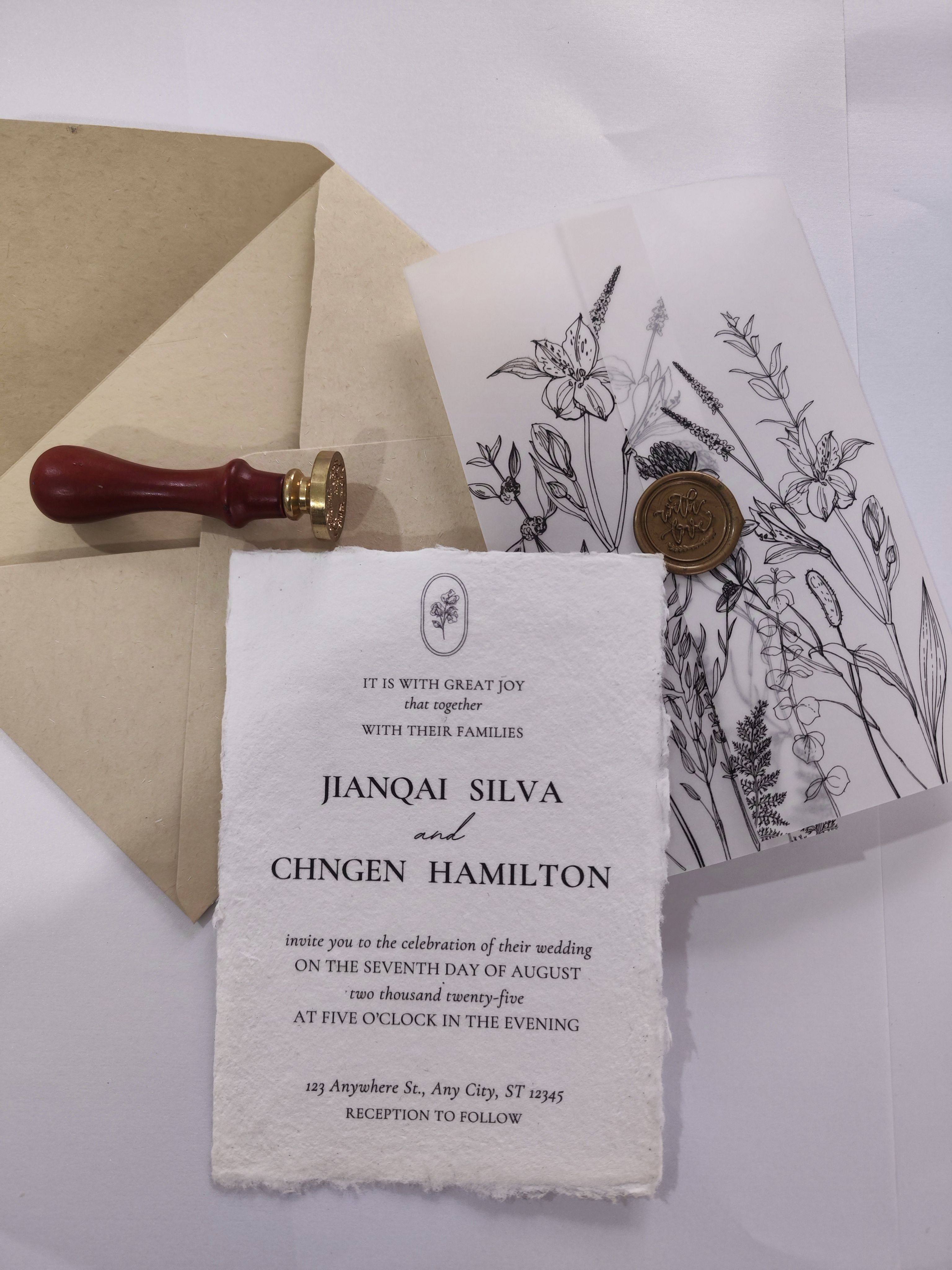 📚 手工造纸手撕边硫酸纸牛油纸套系简约高级邀请函婚礼生日少量打印