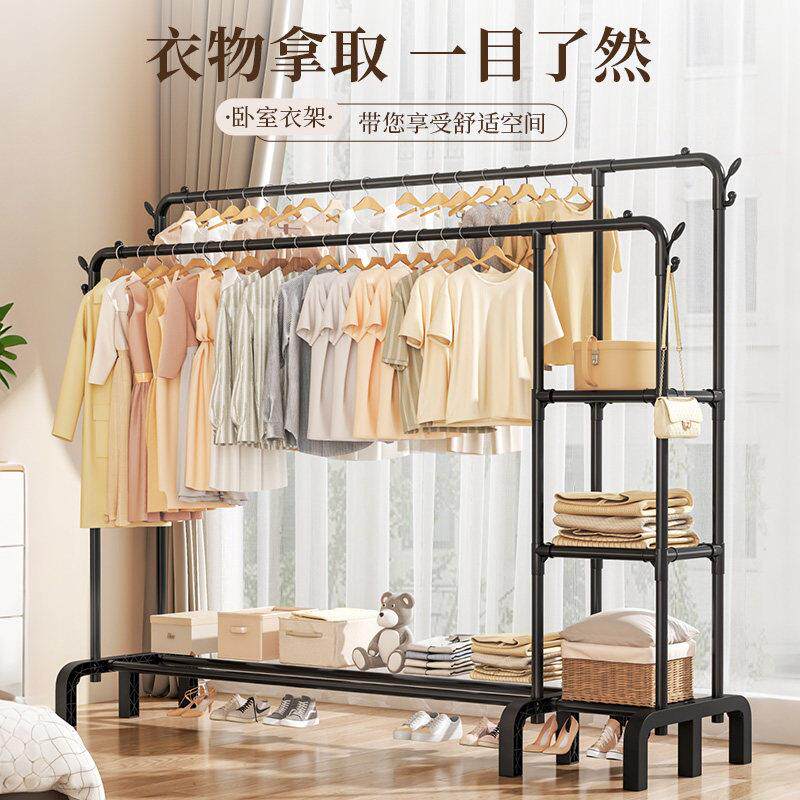 📚 晾衣架落地卧室挂衣服架子家用出租屋室内衣杆架子简易阳台晒衣架