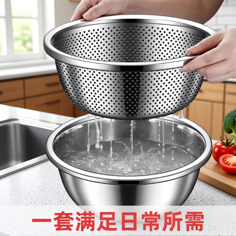 📚 优质不锈钢沥水篮洗菜盆洗米筛家用厨房神器水果篮淘米盆沥水漏盆