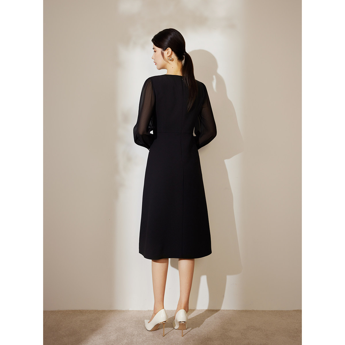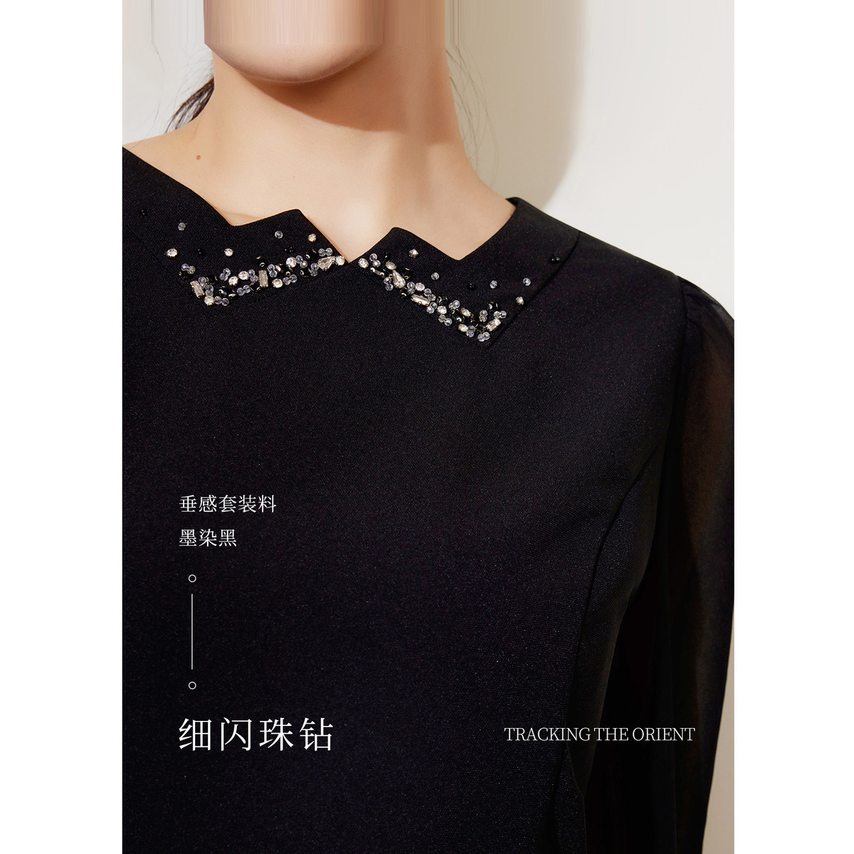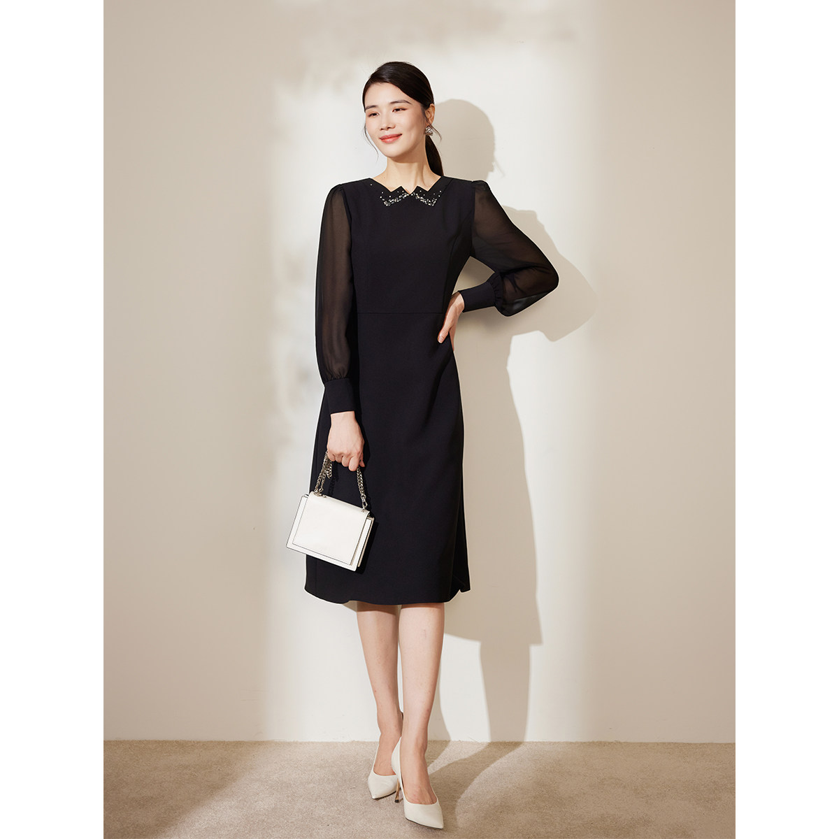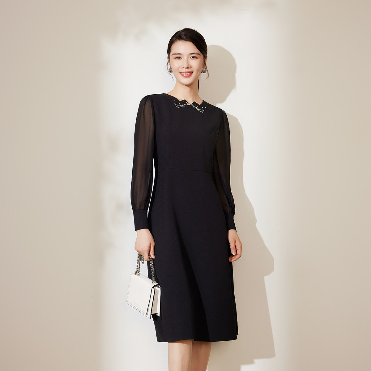 📚 【朦胧纱袖】BBLLUUEE/粉蓝衣橱2025秋装新款法式优雅钉珠连衣裙