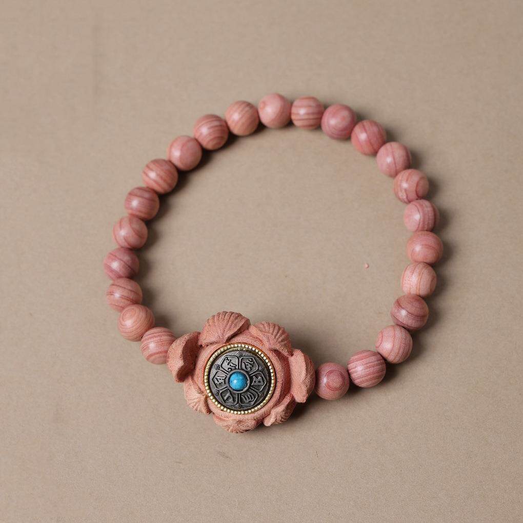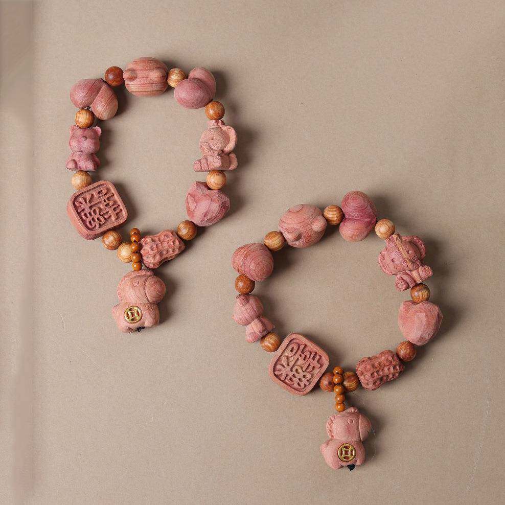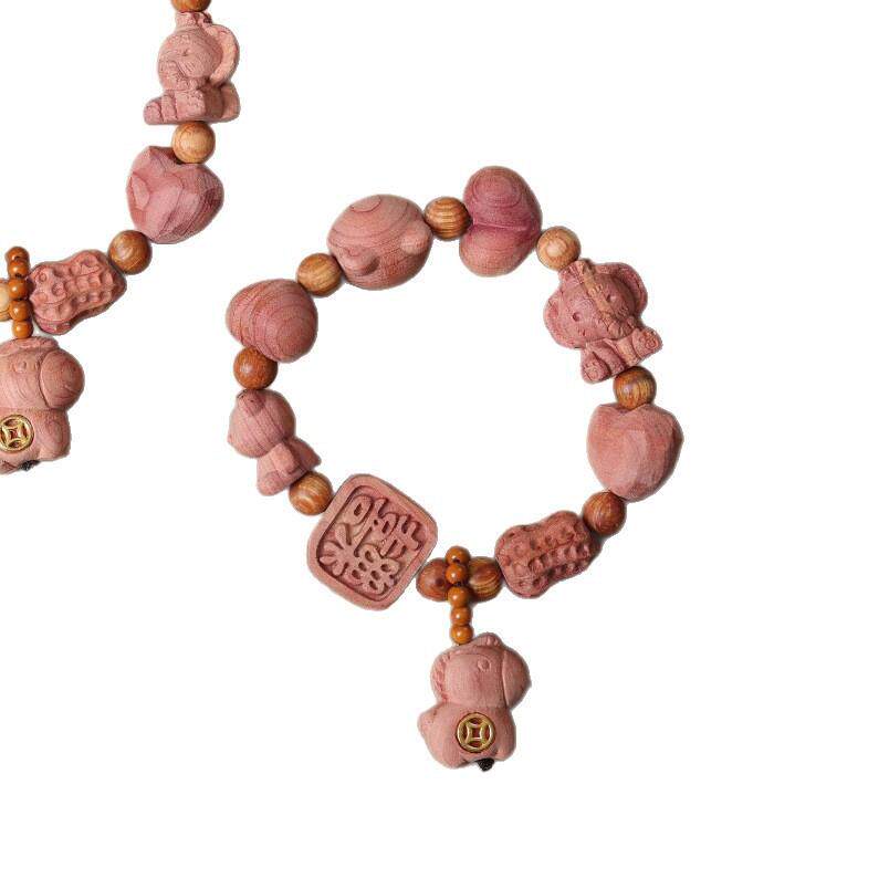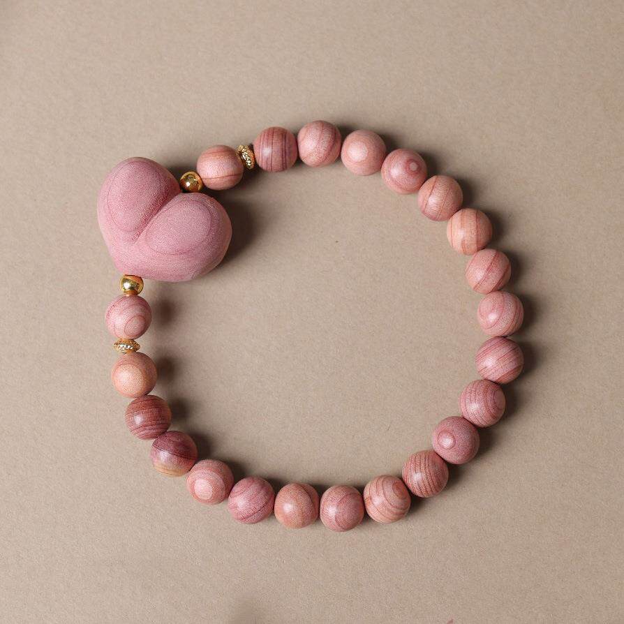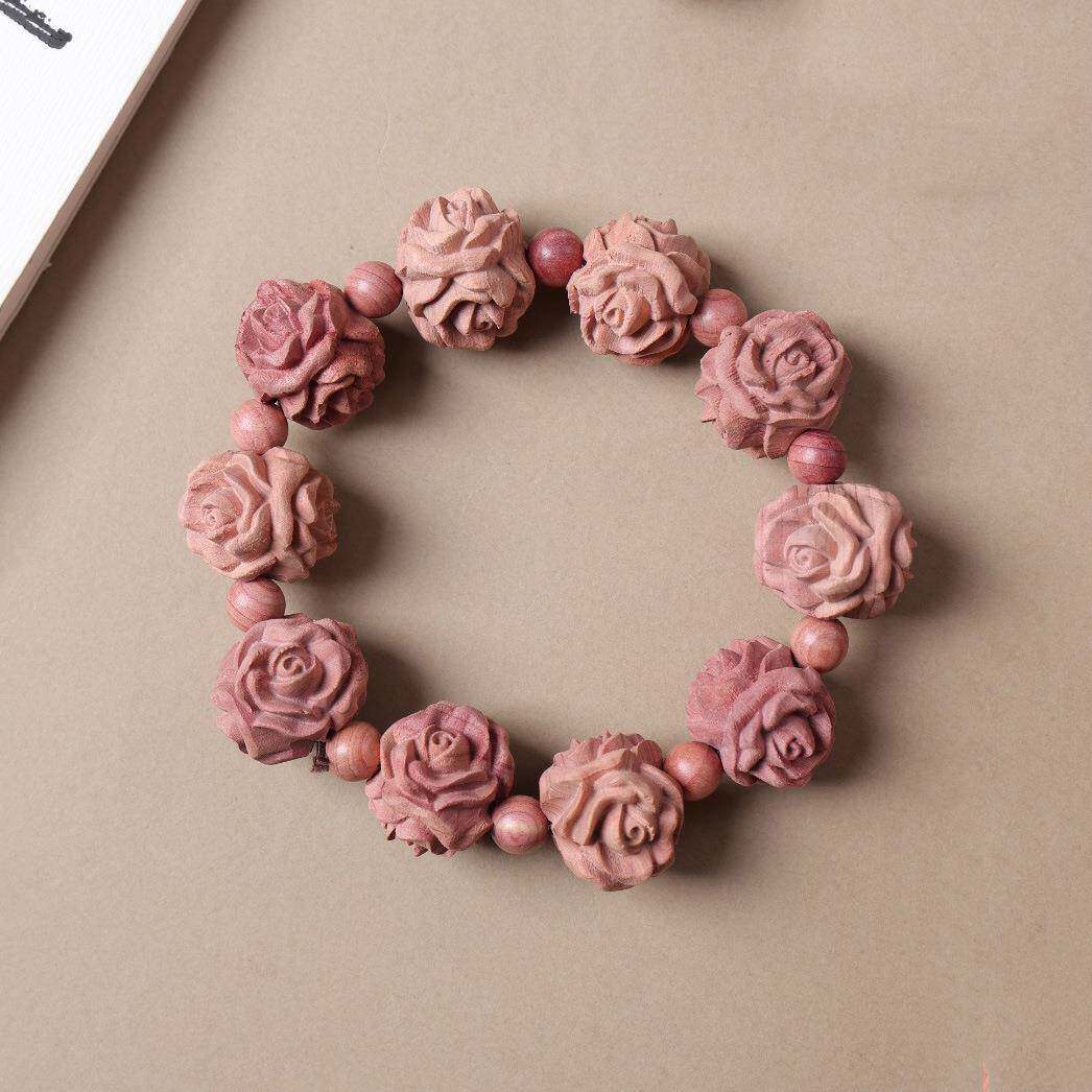📚 血柏木三面玫瑰花球手串马上有钱大爱心单圈情侣款男女手链饰品