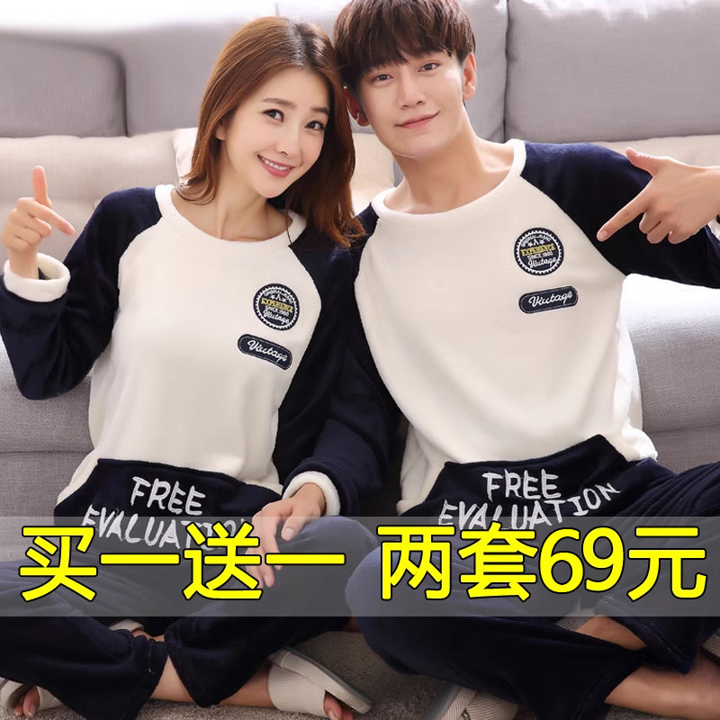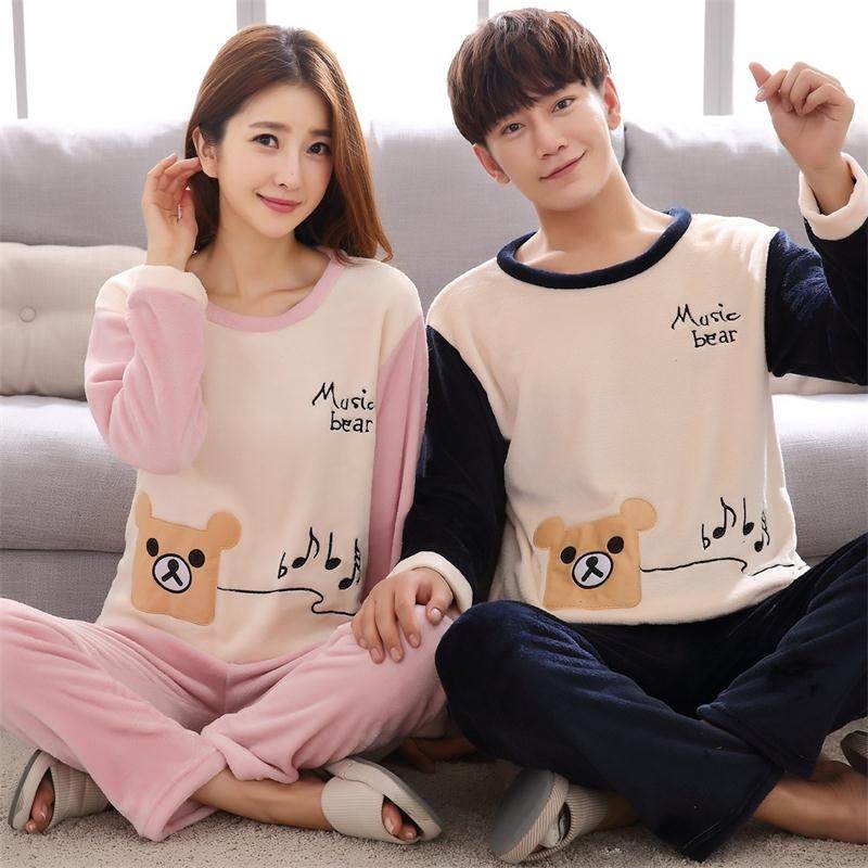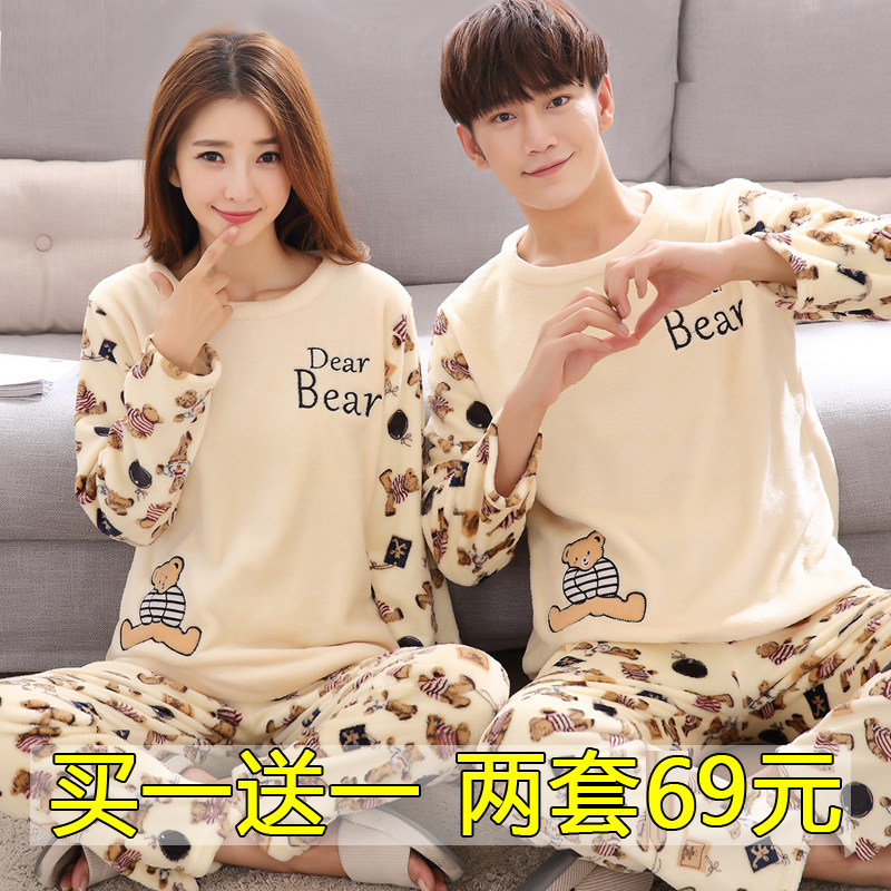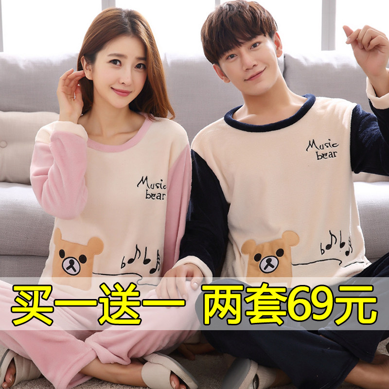 📚 情侣睡衣秋冬季款珊瑚绒加绒保暖卡通男女两套装法兰绒小熊家居服