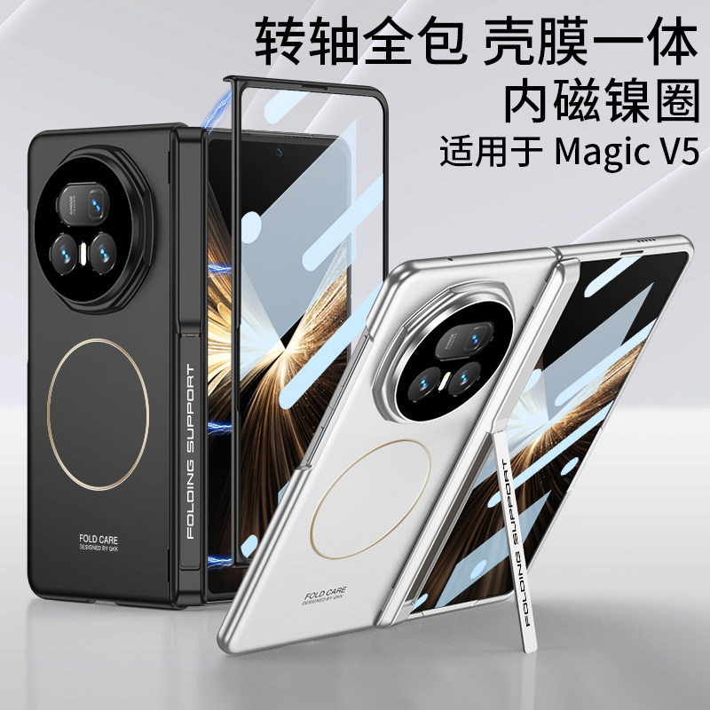 📚 SKSK适用荣耀magicv5手机壳v5保护套v3全包新款轻薄磁吸超薄magic折叠屏外壳华为全包铰链中轴华为折叠款支架