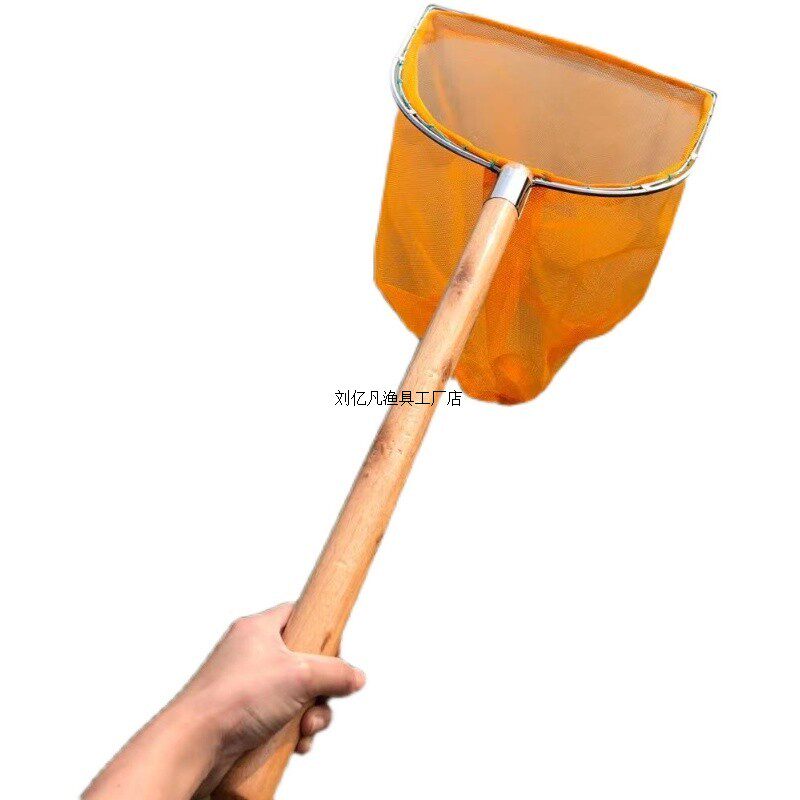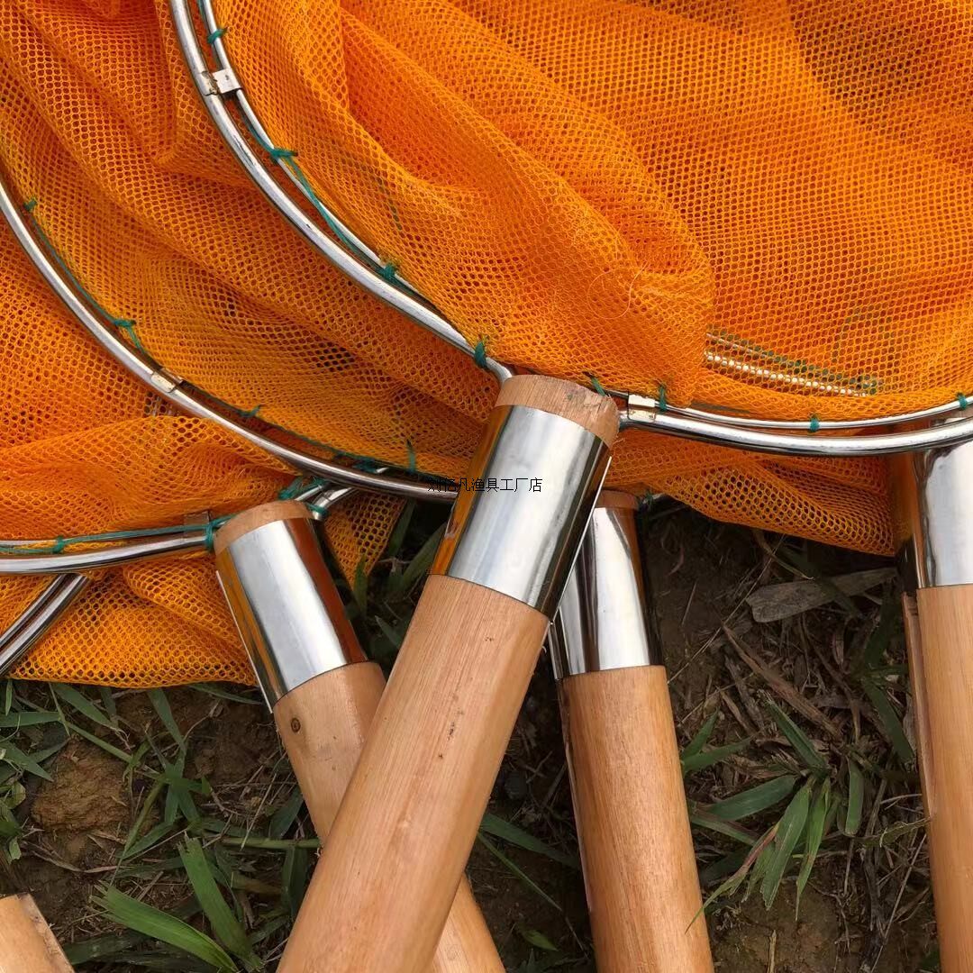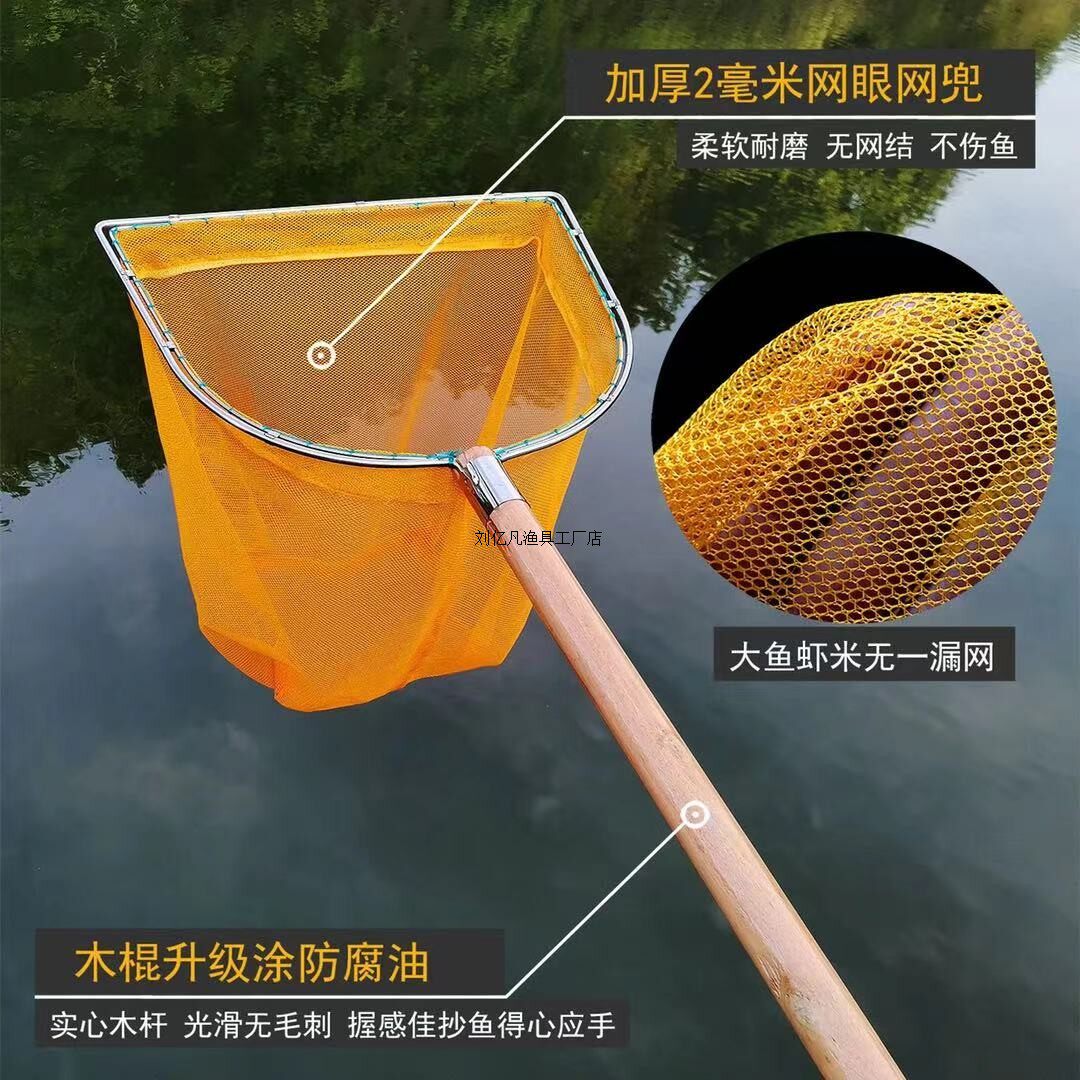 📚 不锈钢实心加粗网圈油木柄抄网小网眼捞鱼虾网不伤鱼具网兜一体网
