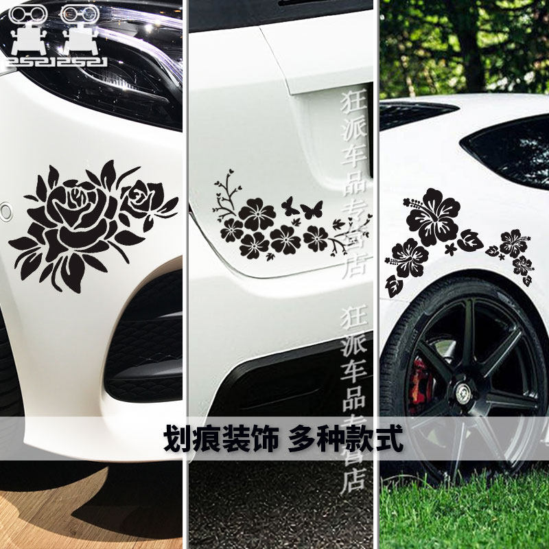 📚 汽车刮痕贴 防水花朵车身贴纸划痕贴 DIY保险杠贴个性电动车贴画