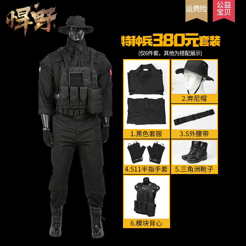 📚 户外迷彩CS黑色套服特种兵套装拓展作训服安保队服工作服美式男女