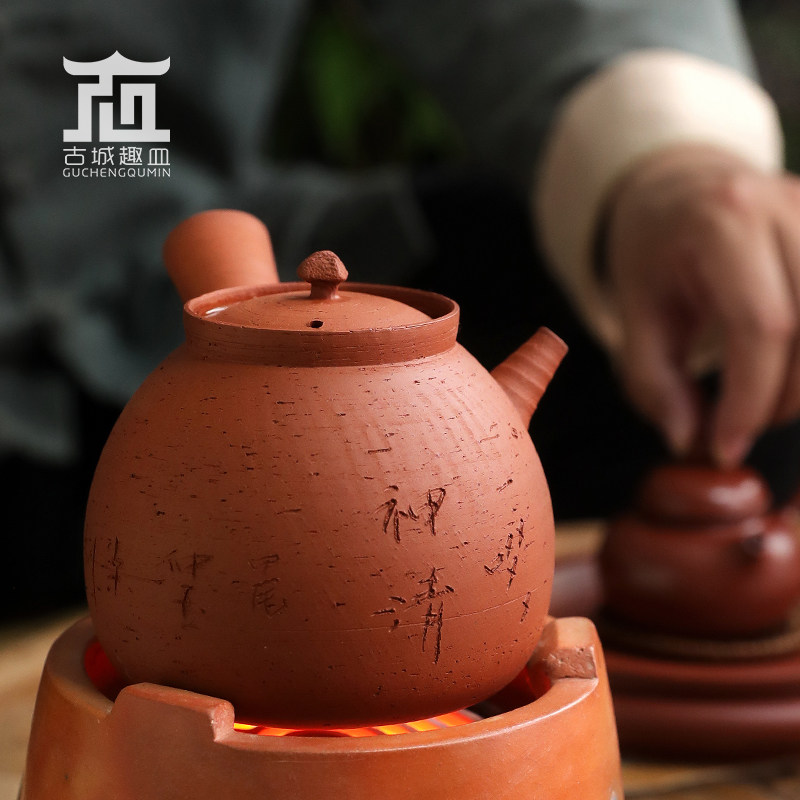 📚 水木潮州传统手拉红泥粗砂薄胎砂铫老茶客炭炉全手工薄锅仔玉书煨