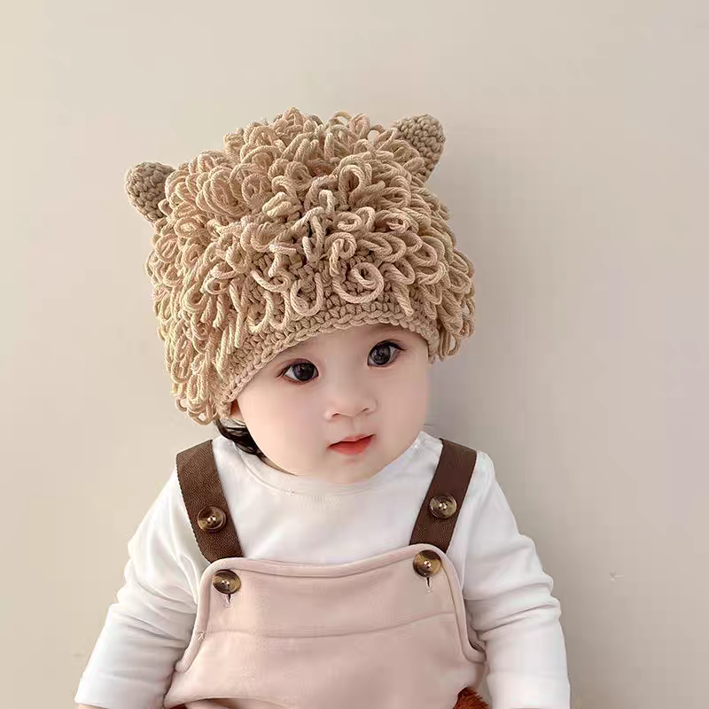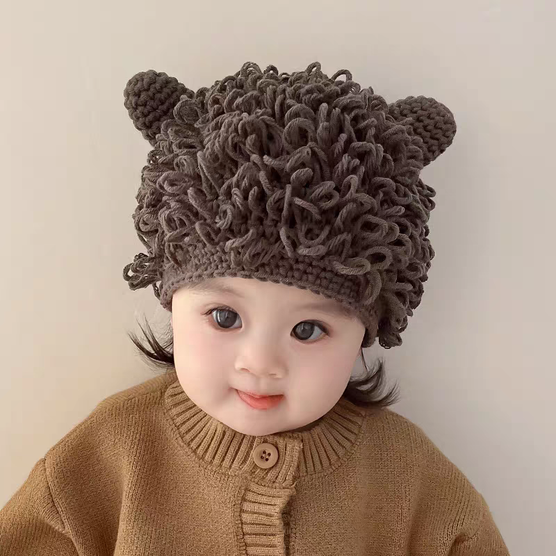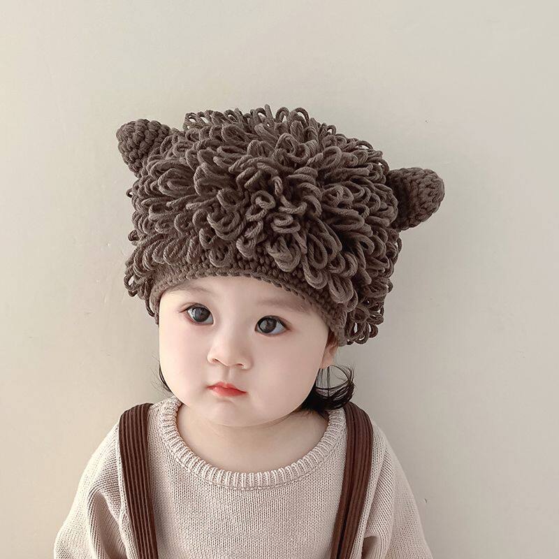 📚 婴儿帽子秋冬季男女宝宝假发帽卷发儿童爆炸头男童可爱搞笑薄款潮
