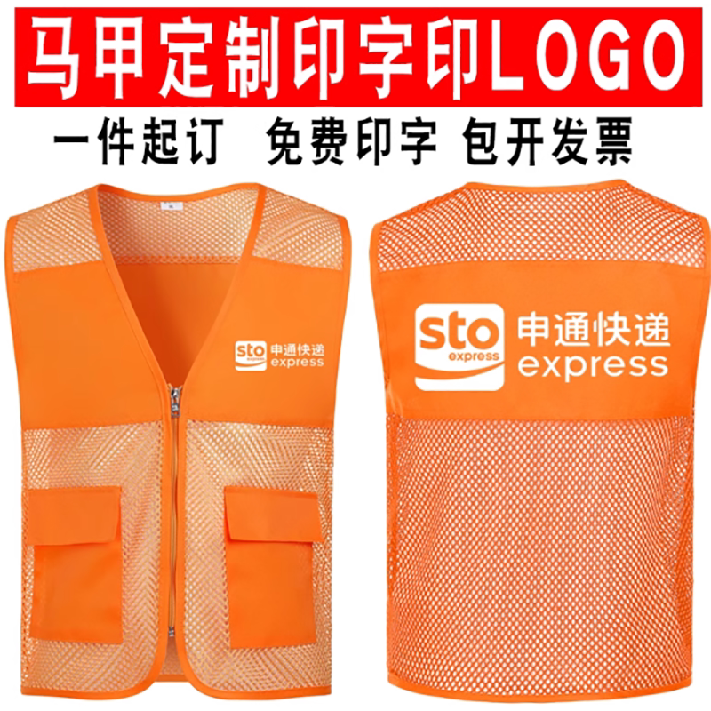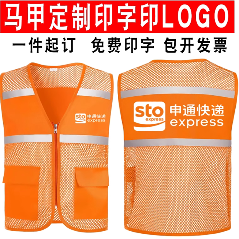 📚 申通快递工作服反光条安全马甲劳务派遣背心定制logo透气马夹印字