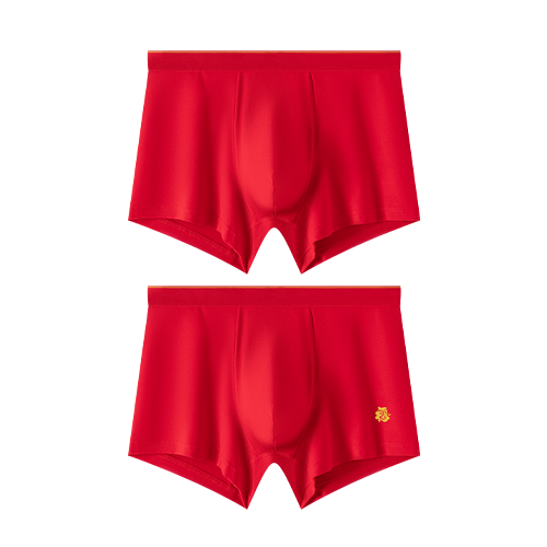 📚 顶呱呱内裤男纯棉中腰大红色喜庆结婚本命年中国红平角短裤2条装