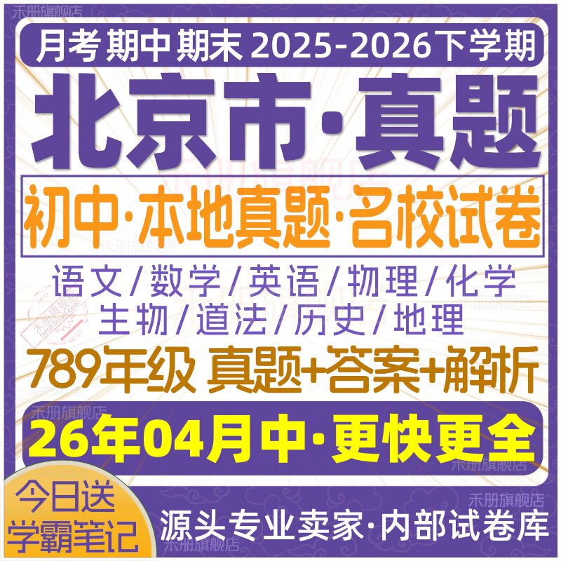 📚 2026新版北京市初中七八九年级上册下册月考期中期末名校真题试卷初一二初三数学语文英语物理化学生物地理历史道法练习试题电子版