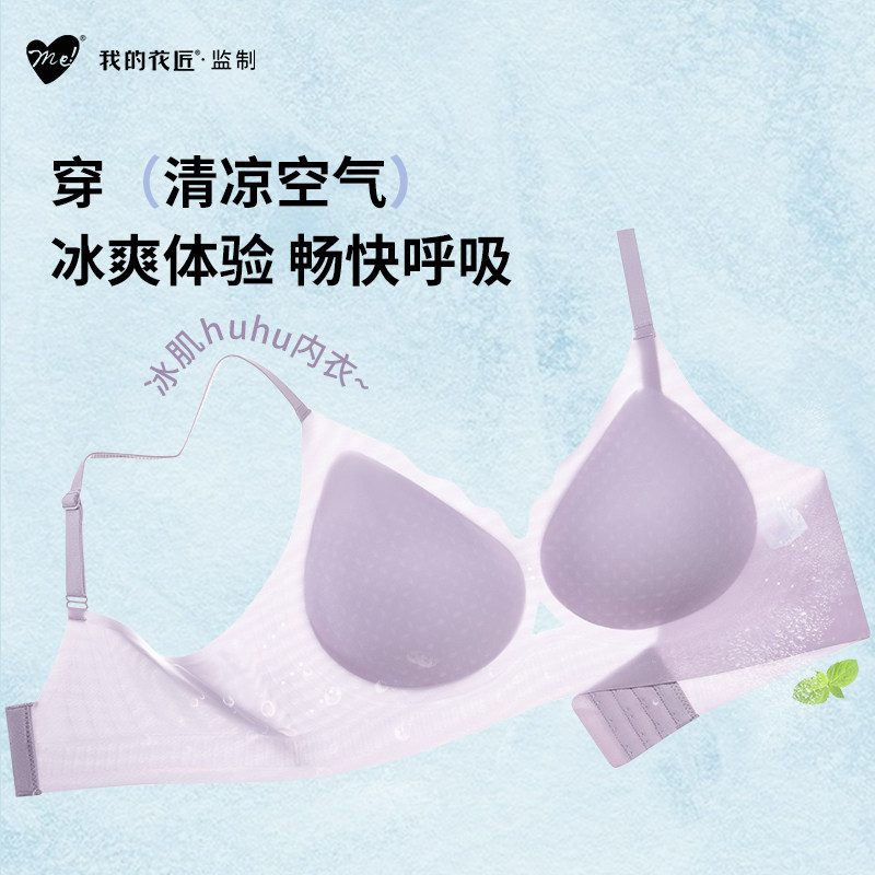 📚 我的花匠Me冰肌huhu内衣聚拢凉感夏季薄款无钢圈放下垂软支撑文胸