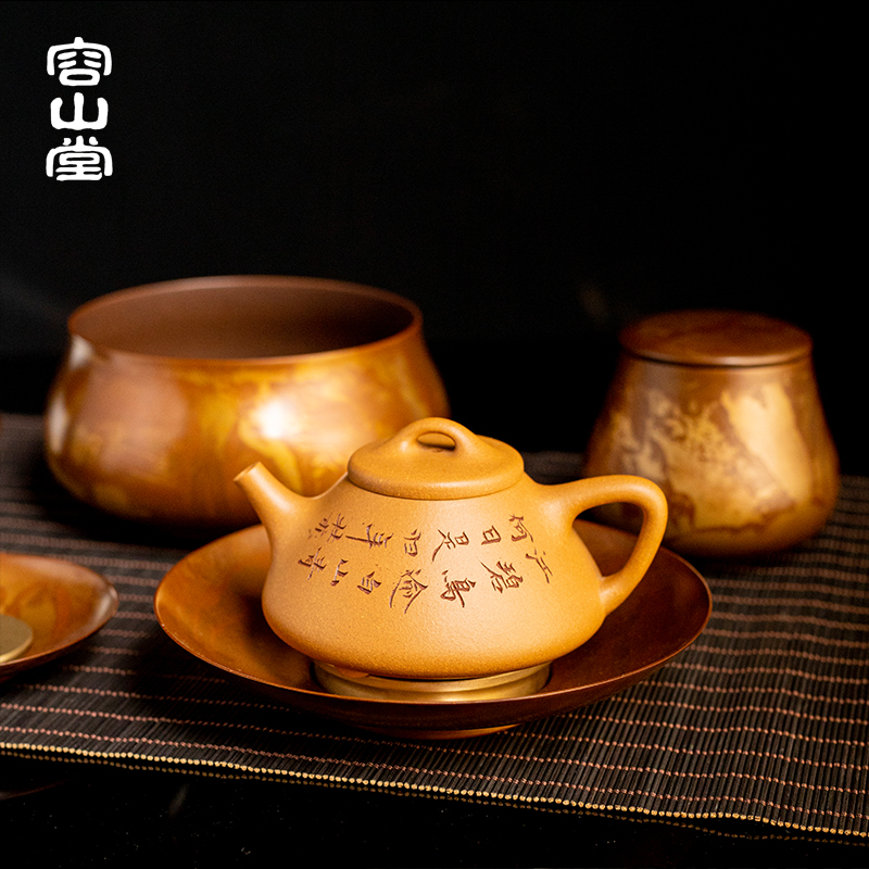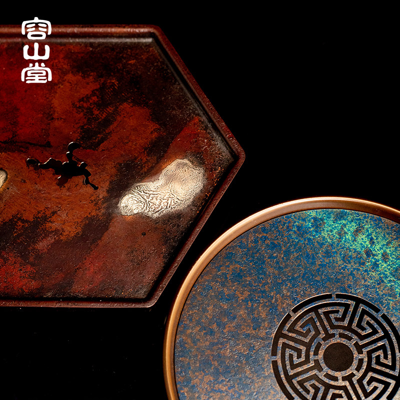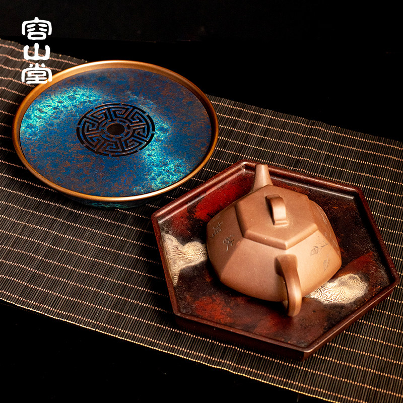 📚 容山堂茗仕铜壶承小茶盘紫铜干泡盘储水小茶台隔热垫紫砂壶托