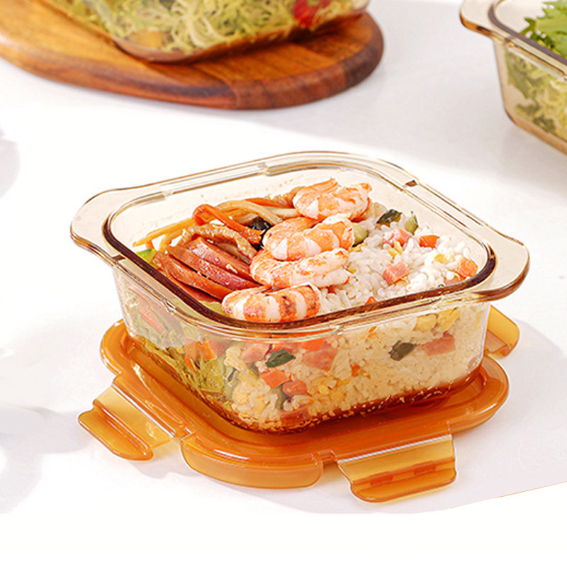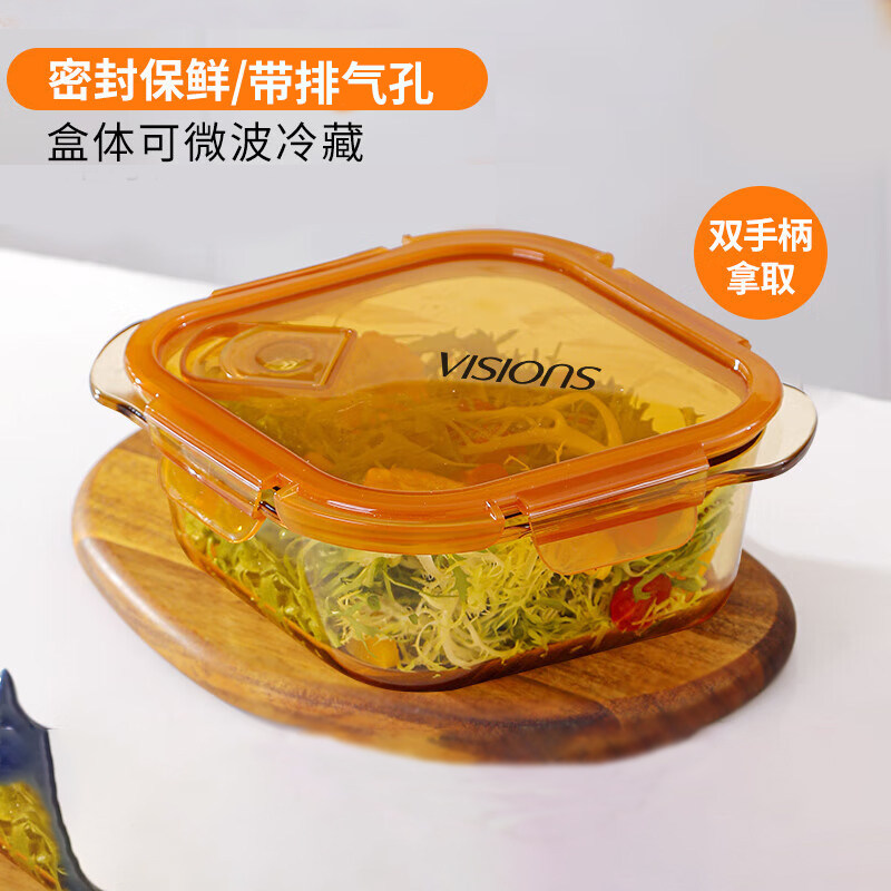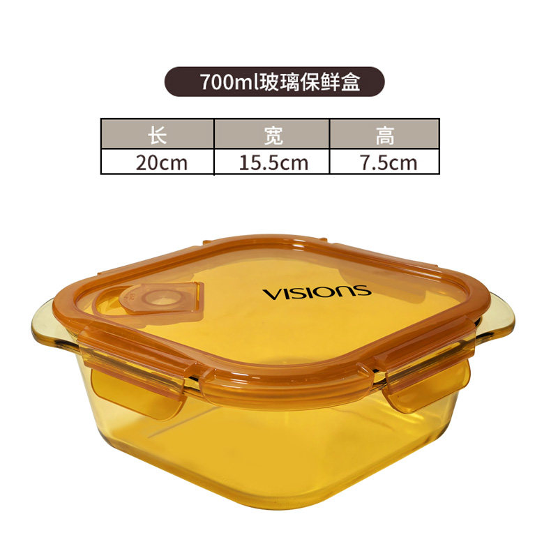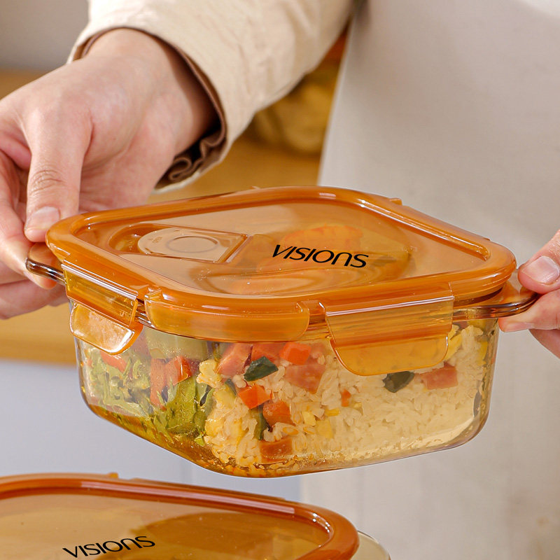 📚 康宁餐具700ml玻璃保鲜盒2个装家用饭盒耐高温菱形带排气孔带手柄