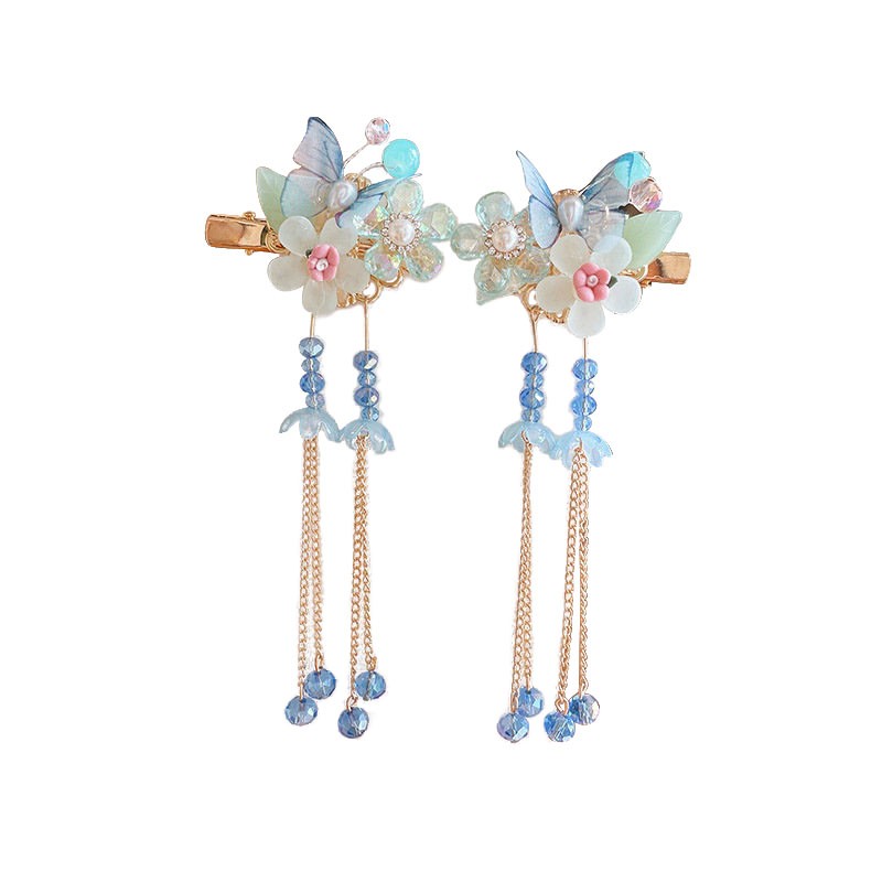 📚 新儿童汉服头饰夏季女童蝴蝶流苏步摇发夹小女孩古装发卡古风发饰