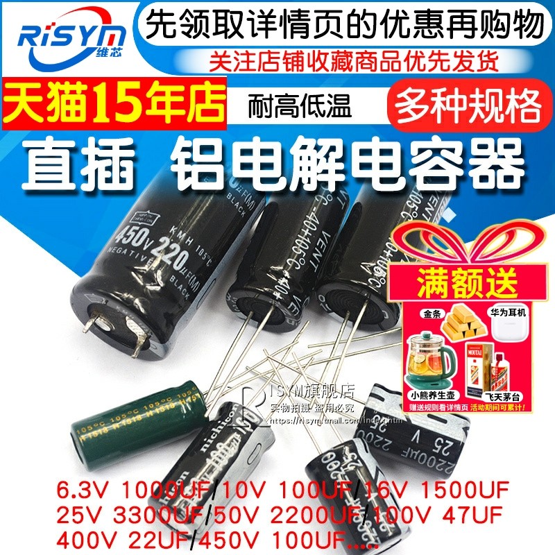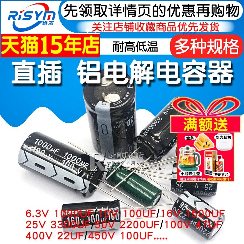 📚 铝电解电容器10/16v/25v/35/50/10uf/22/47/100uF/1000/3300/2200
