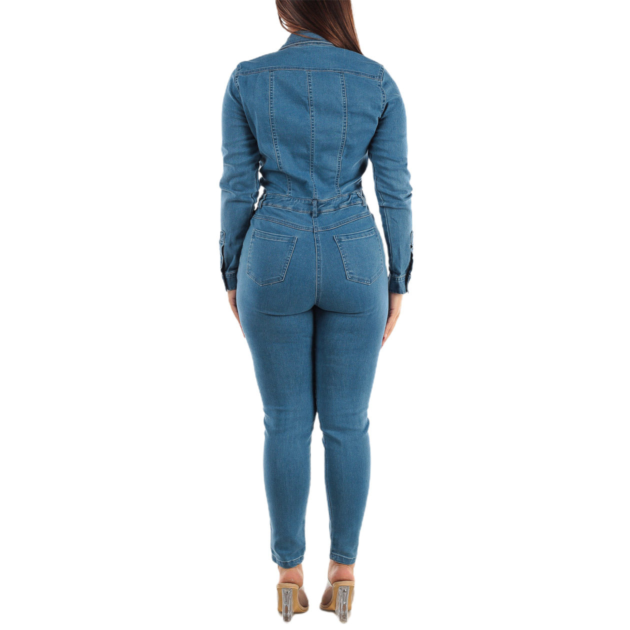 📚 Women Denim Jeans Jumpsuit 长袖小脚口洗水牛仔连体裤连体衣女