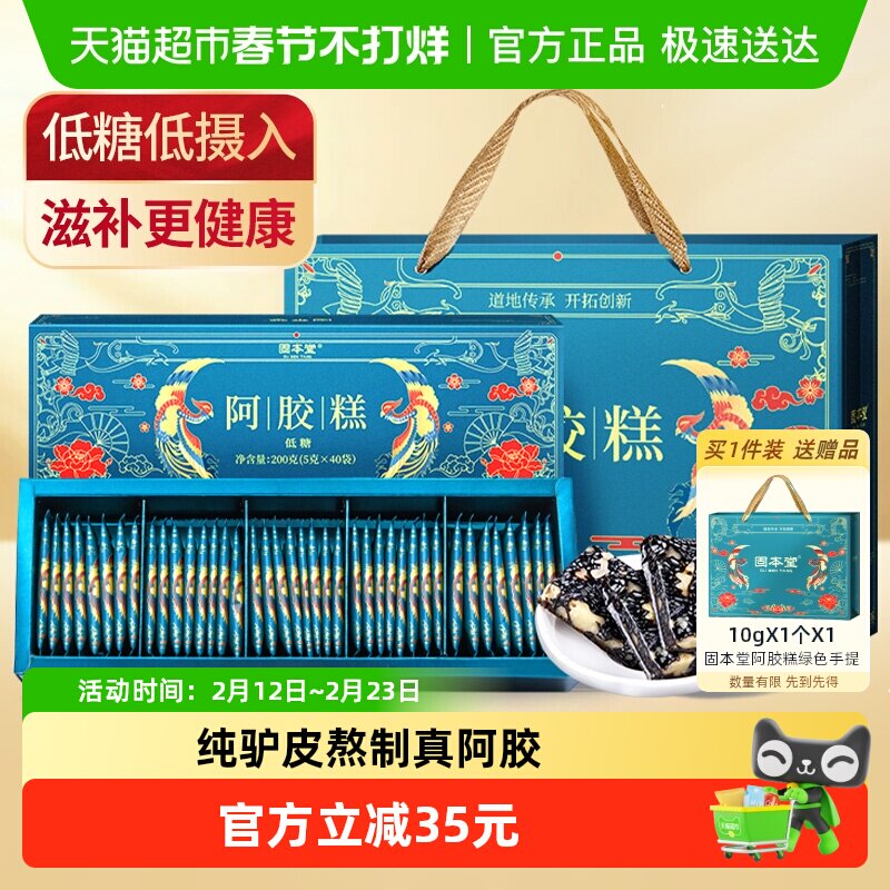 📚 固本堂低糖阿胶糕年货礼盒送礼长辈过年补品营养气血高档实用礼品