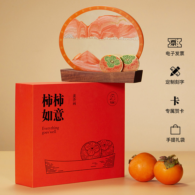 📚 马鹿事事如意柿子流沙画摆件搬家乔迁结婚生日礼物2025新年装饰品