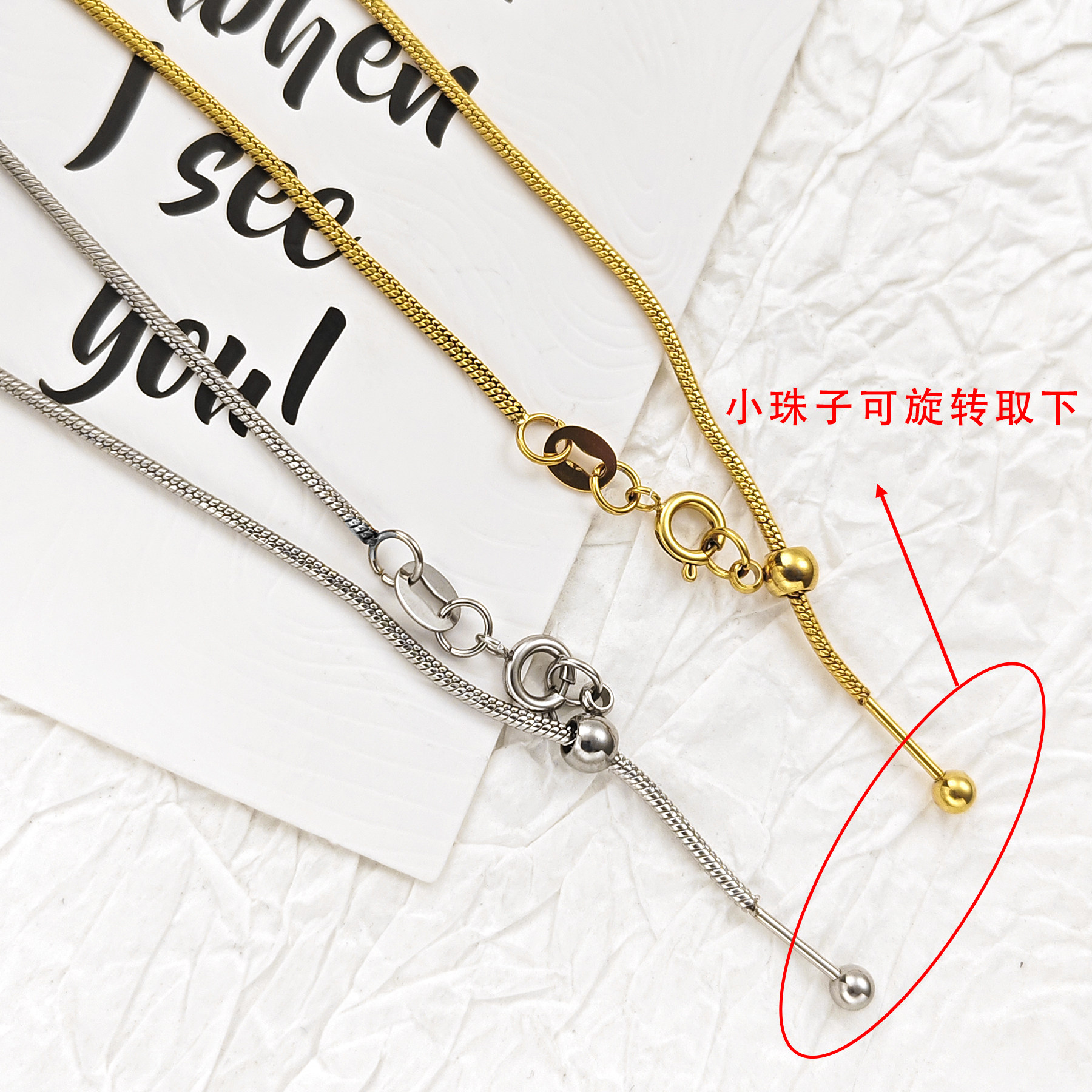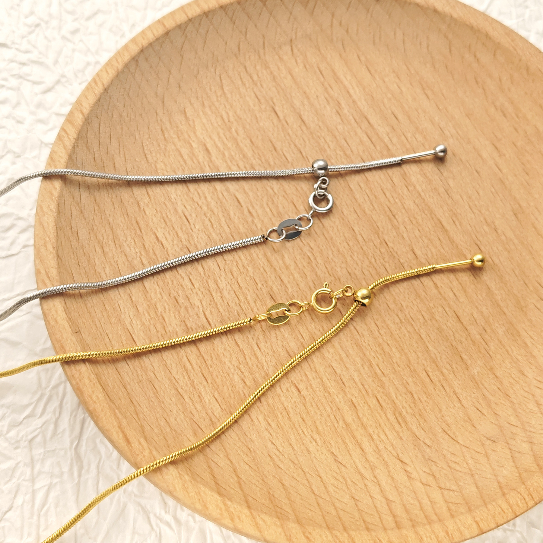📚 钢本饰品 不锈钢1.2mm圆蛇针式链可调节串珠锁骨链抽拉万能项链